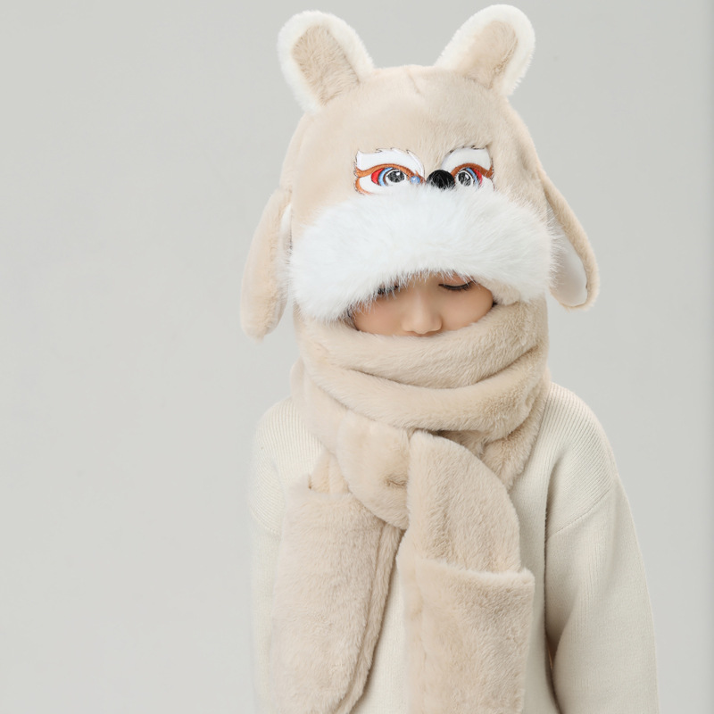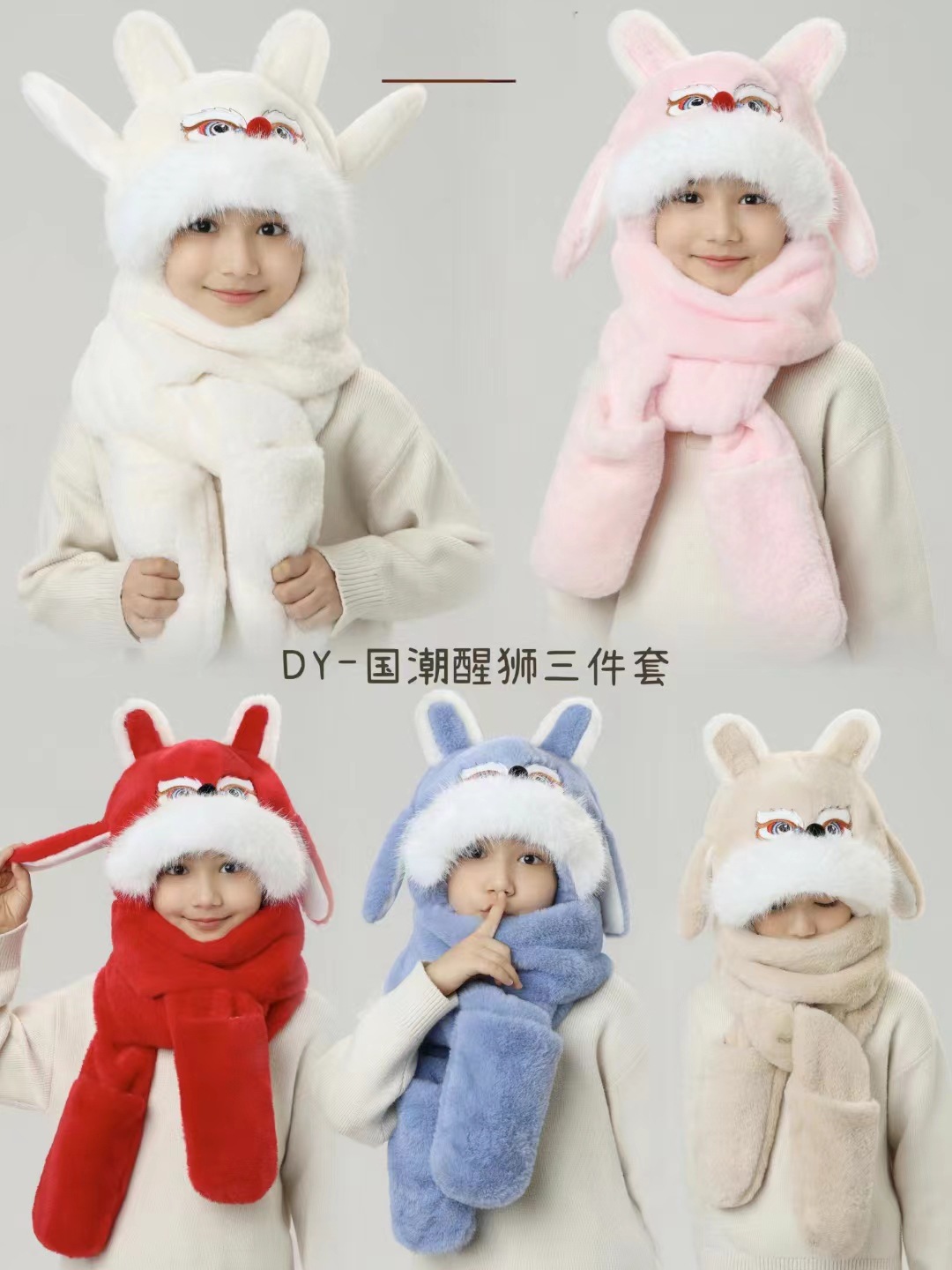 冬の新型の赤いぬいぐるみが目を覚ますライオンの帽子男の子の女の子の帽子のマフラーの手袋の3つのセットの国の潮のお祝いの帽子