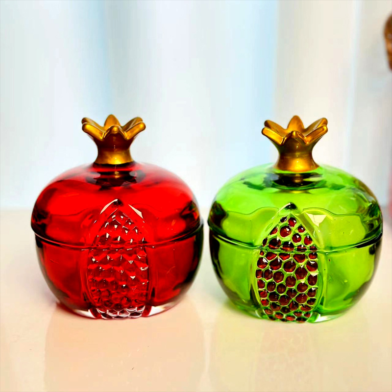 縁起の良いザクロガラスキャンディージャー家の装飾カラフルな砂糖瓶ドライフルーツ茶瓶家庭用蓋付き保存瓶