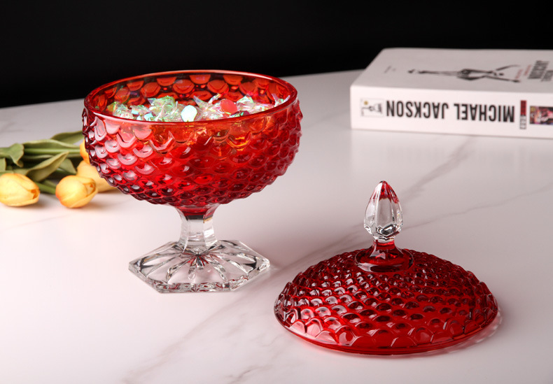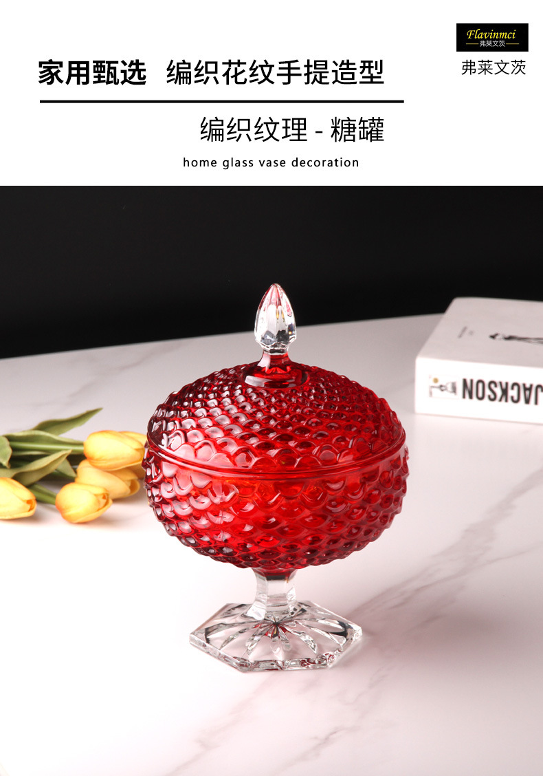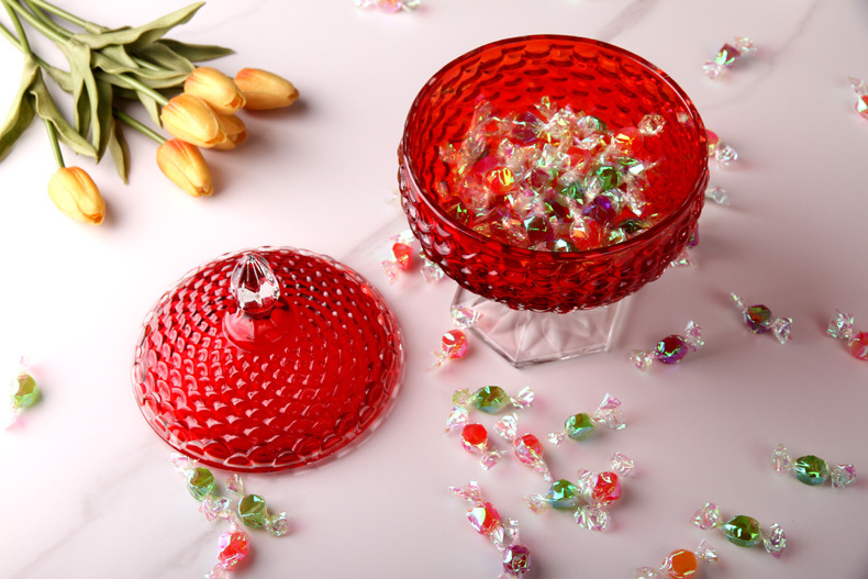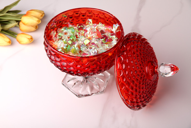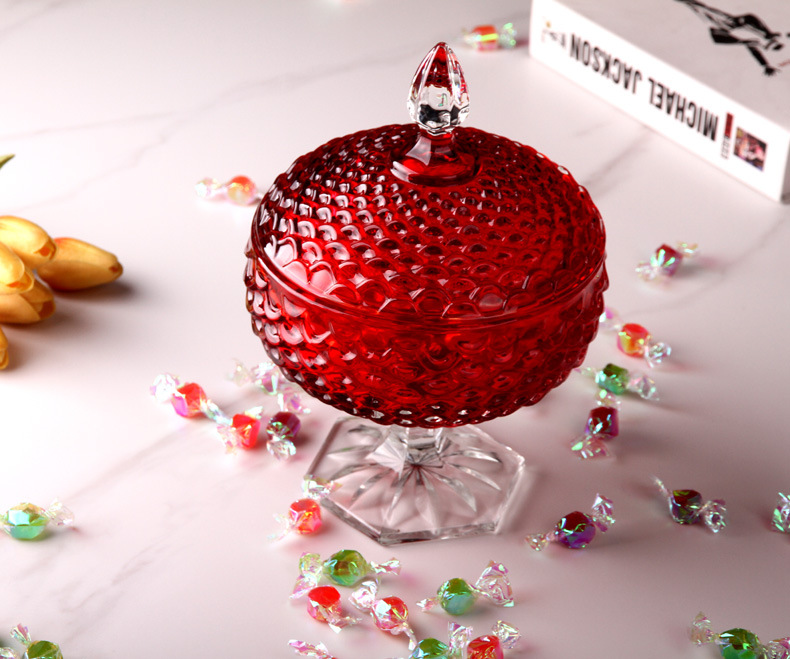 赤い肥厚クリスタルガラスキャンディージャードライフルーツジャー蓋付き保存瓶家庭用保存瓶結婚式の砂糖瓶砂糖瓶