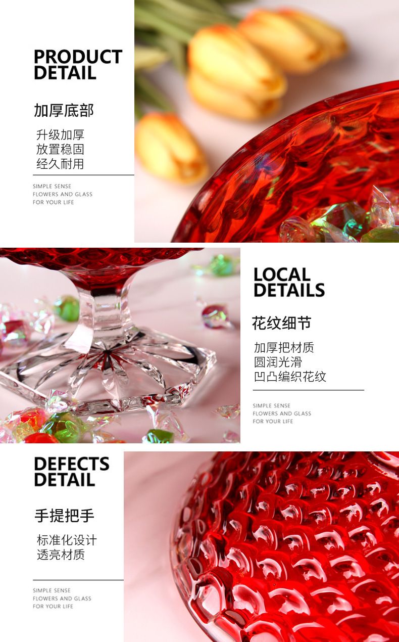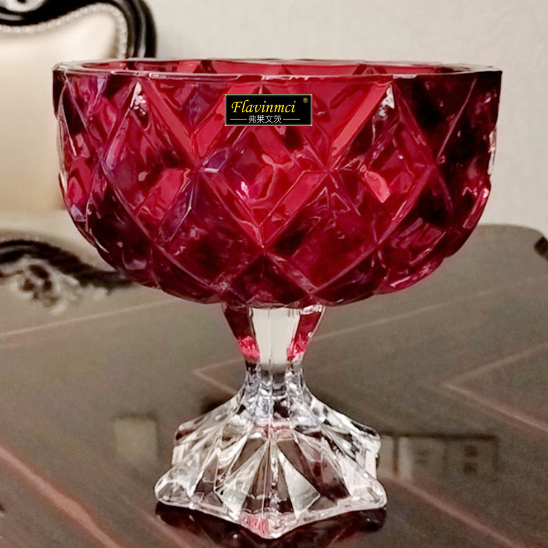 赤い水晶ガラスキャンディー皿小果斗ヨーグルトカップアイスクリームカップ高足ドライフルーツキャンディー皿家庭用果物皿
