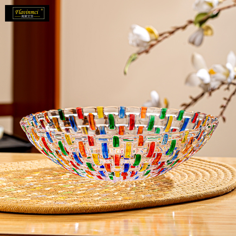手绘编织纹糖果盘 彩色玻璃风情水果盘子 INS浮雕撞色玻璃餐盘
