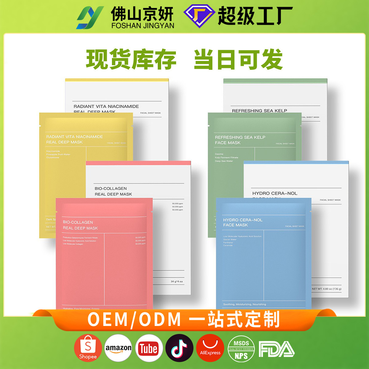 跨境四色生物胶原蛋白面膜盒装神经酰胺面部贴片面膜face mask