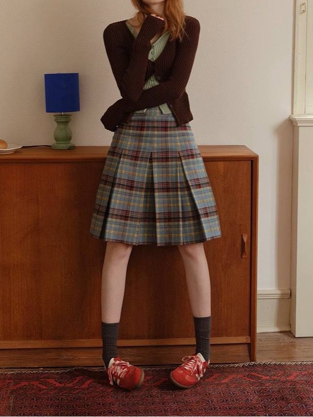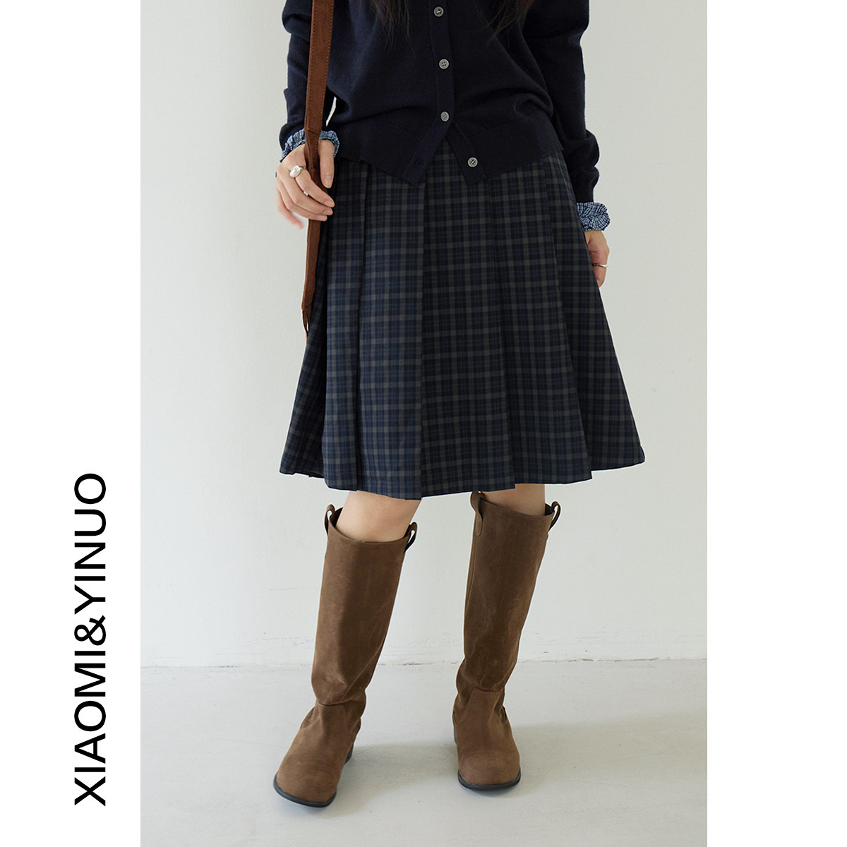 【欧凡】学院风复古格子高腰百褶半身裙女2025秋季显瘦A字裙3179