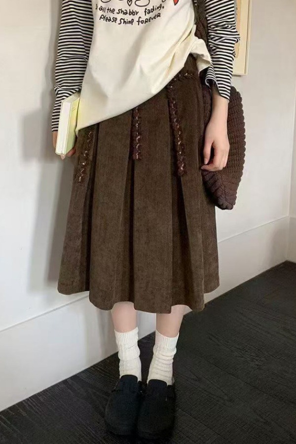 原创韩系深灰色学院风系带中长裙修身百褶半身裙子