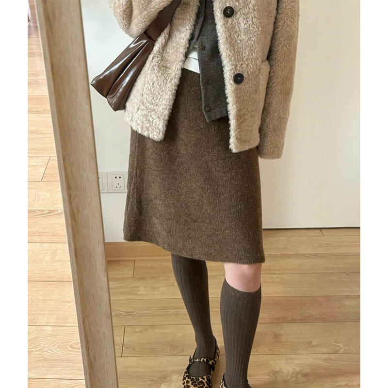无D推荐!ins百搭针织半身裙女秋冬美拉德复古气质软糯A字中裙