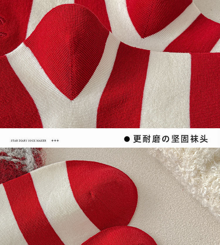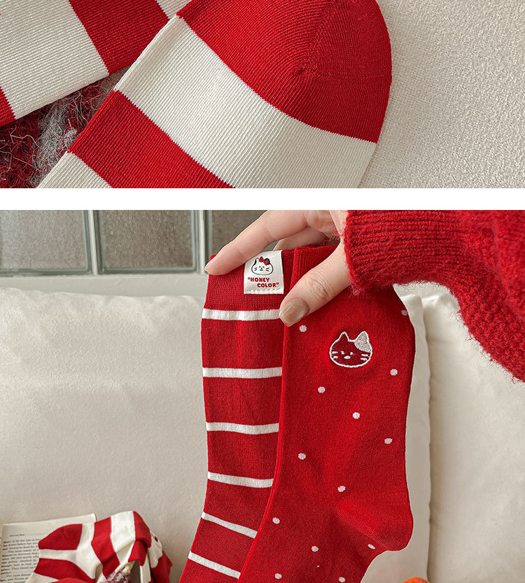 诸暨袜子女纯棉中筒袜刺绣爱心拼色条纹红色袜子2026新年结婚长袜