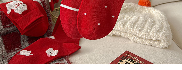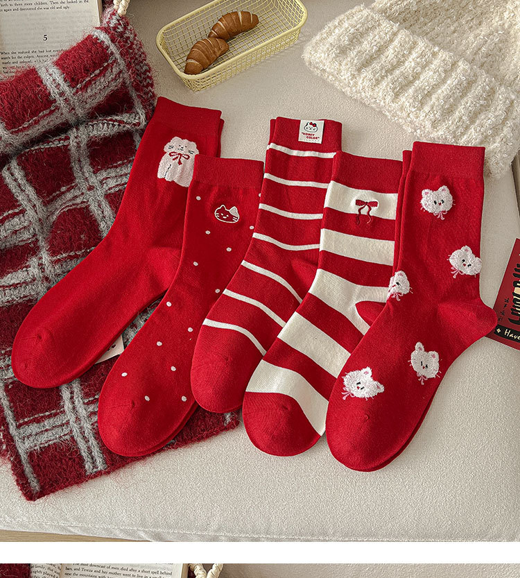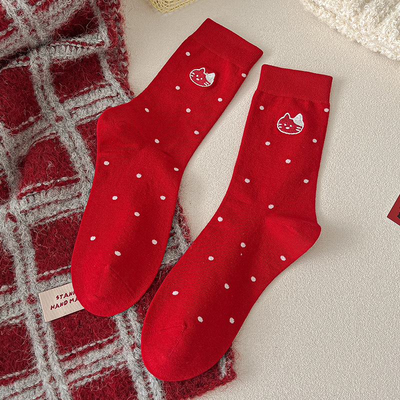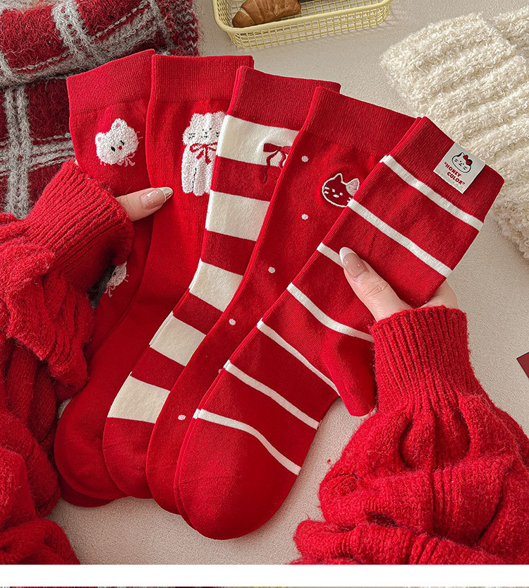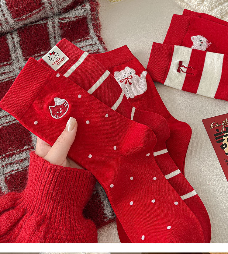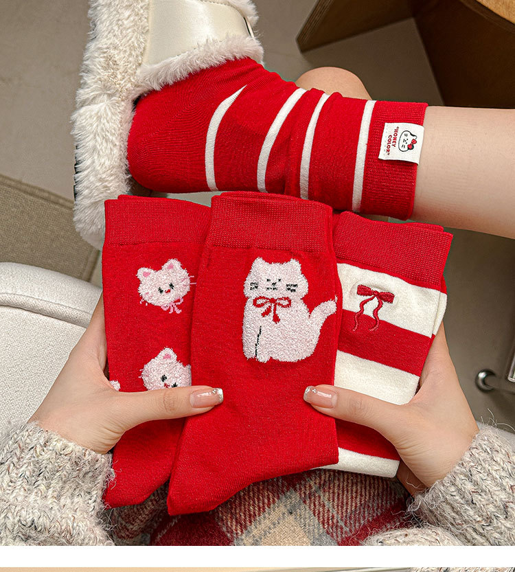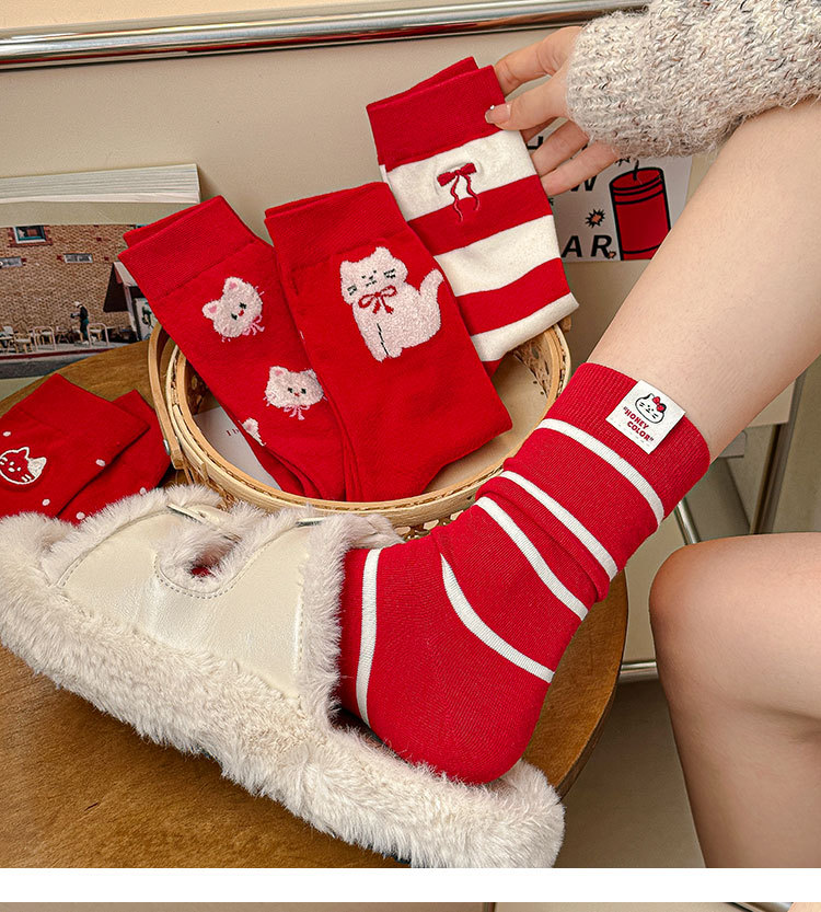 2025新作の靴下の女性の赤い中筒の靴下の秋冬の本命年のかわいい漫画の新年の大きい赤い綿の靴下の女性
