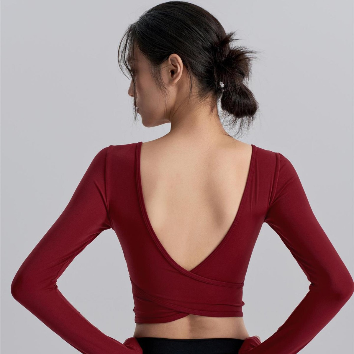 带胸垫深v瑜伽长袖女 外穿裸感聚拢美背普拉提训练健身上衣瑜伽服