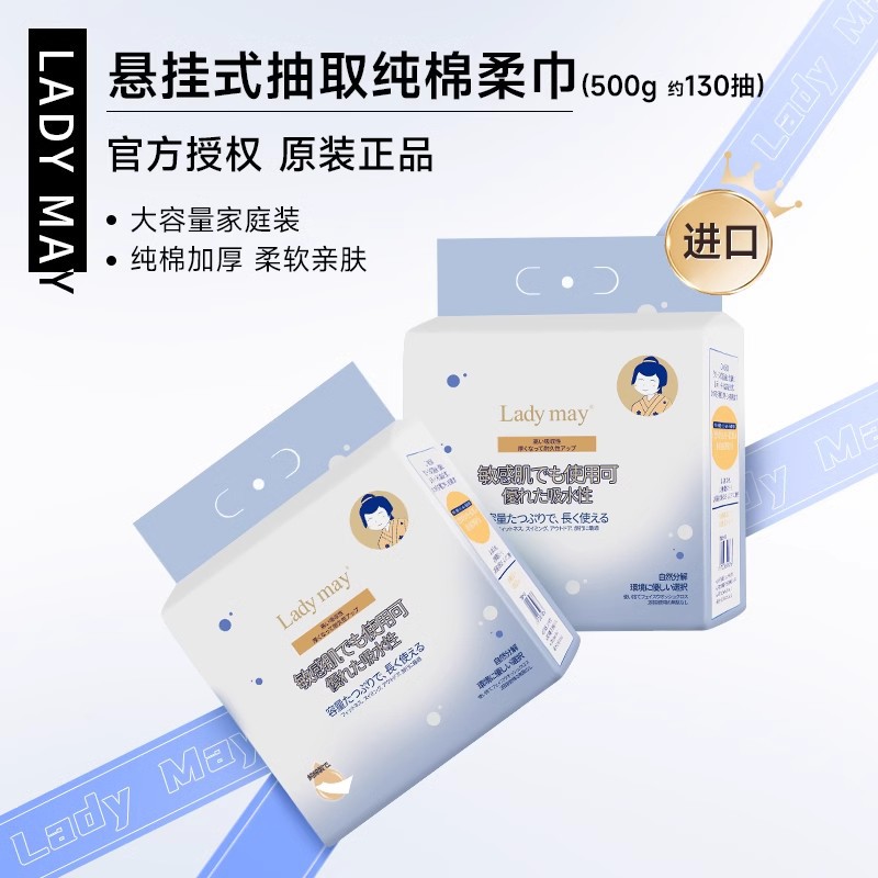 日本Ladymay純綿フェイスタオル、引き出し式使い捨て純綿ソフトタオル、フェイスワイプ、ベビー用洗顔タオル、厚手