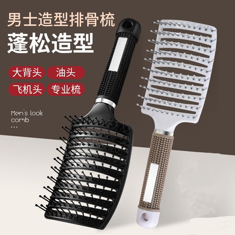 豚毛の静電気防止カーブ型マッサージコーム、9列コーム、スタイリング、巻き毛、プラスチック製、髪を傷めない