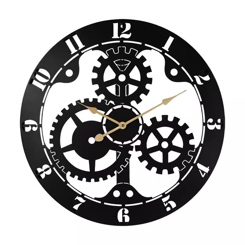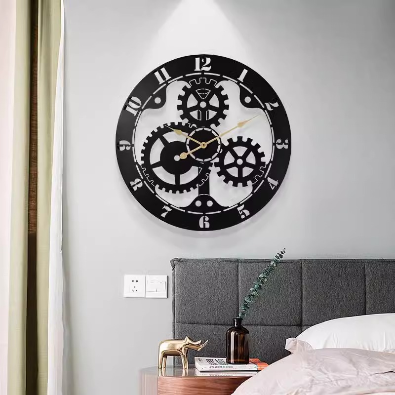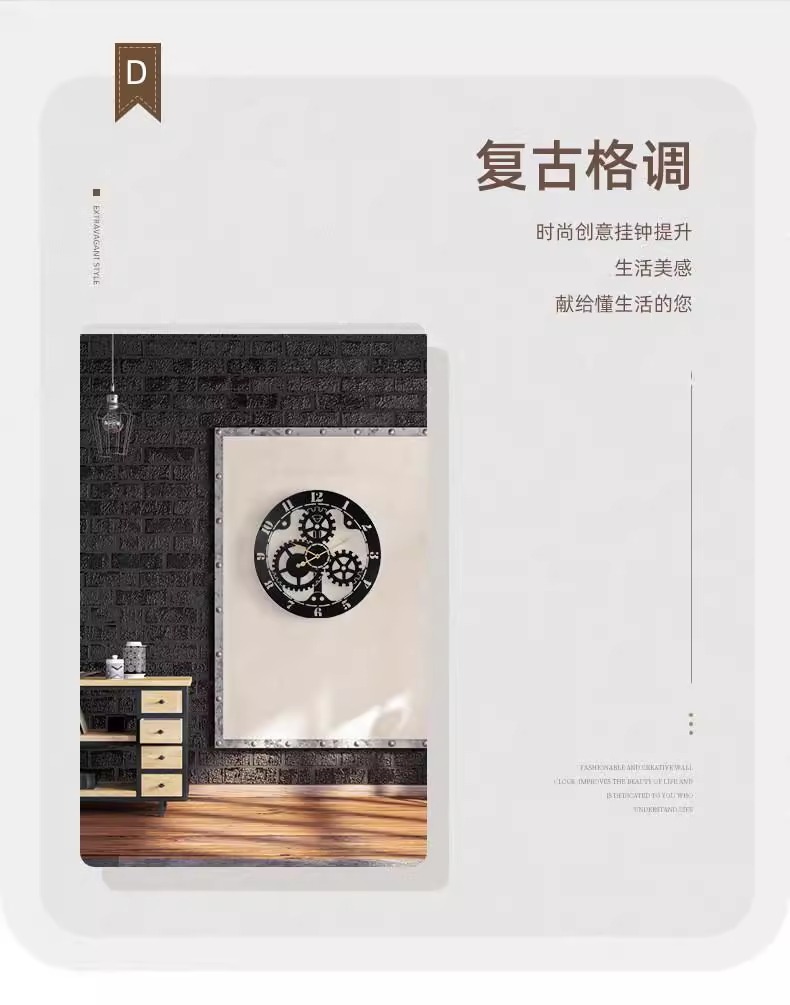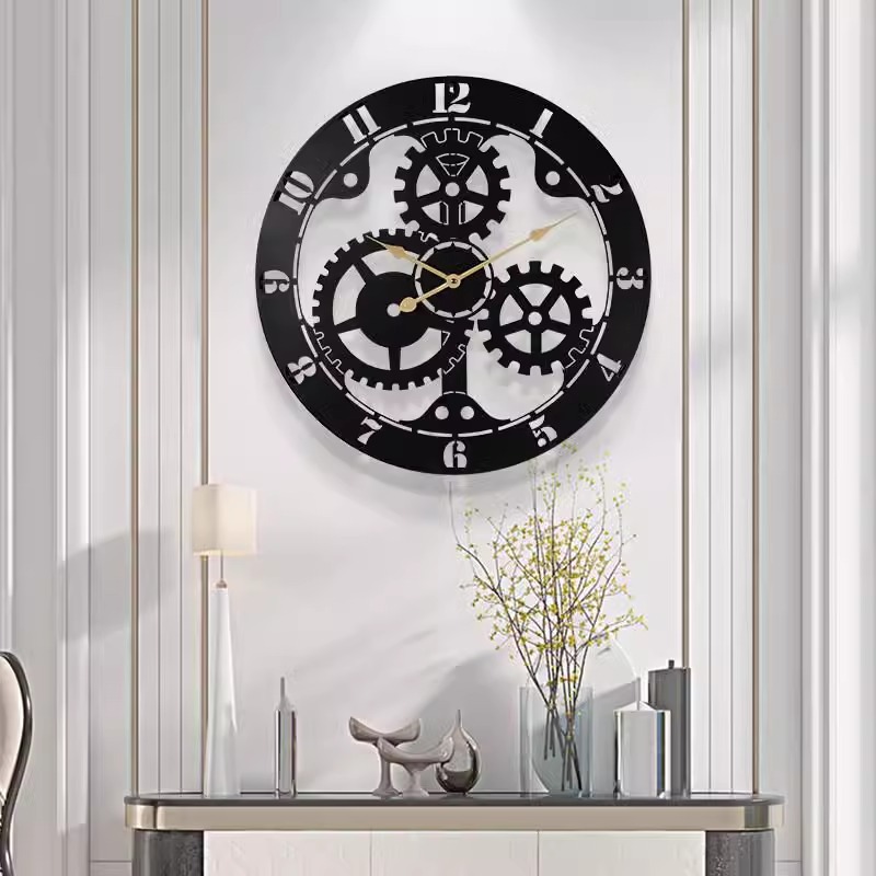 レトロ掛け時計木製ギア装飾壁時計個性ローマ工業風リビング時計静音クリエイティブ掛け時計