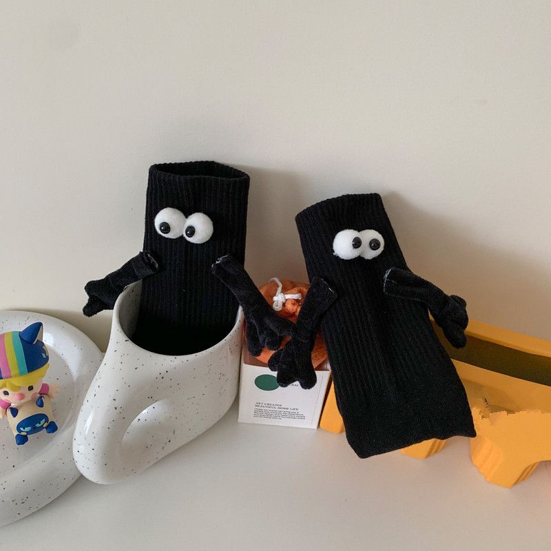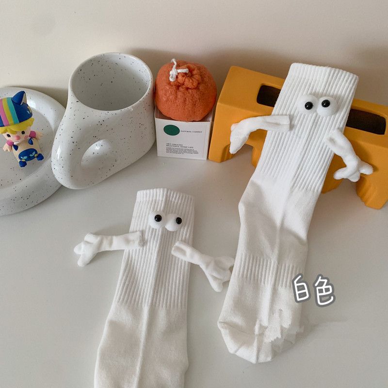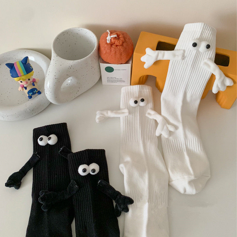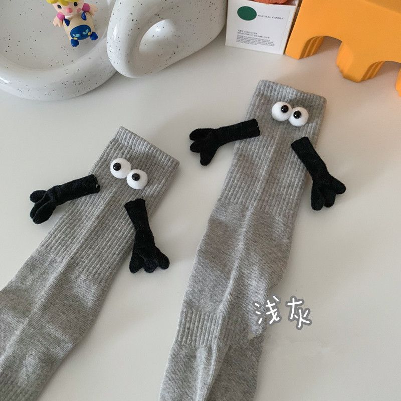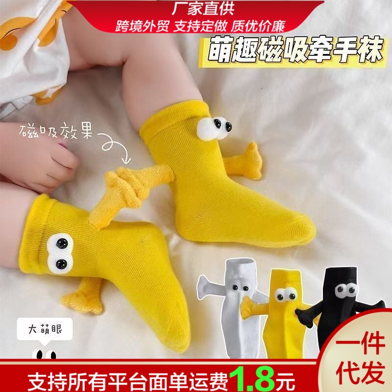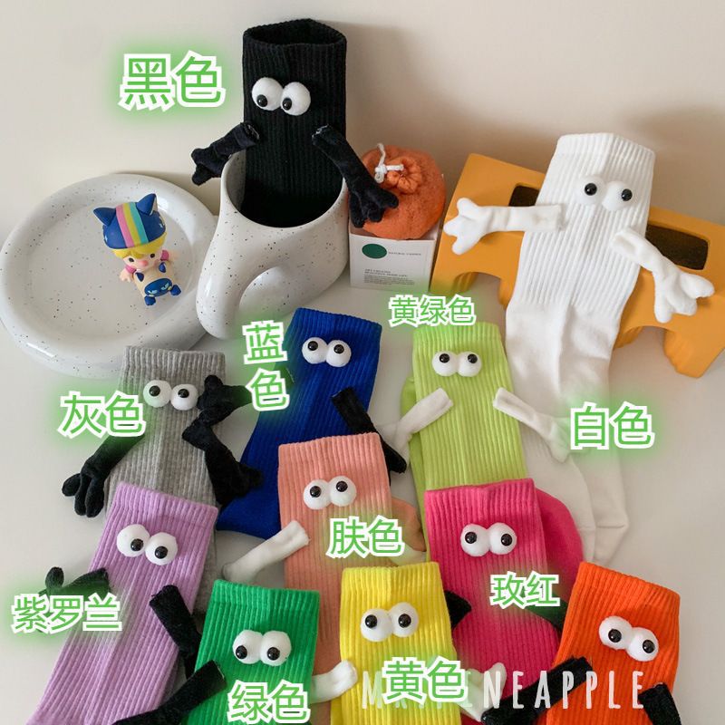 牵手袜子磁吸男女中筒袜可爱搞怪笑脸彩色网红款拉手亲子袜