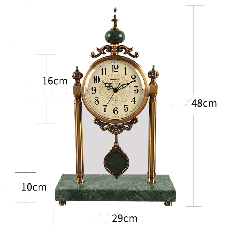 欧式美式轻奢摇摆钟表摆件客厅时钟摆钟奢华别墅台式大理石装饰品