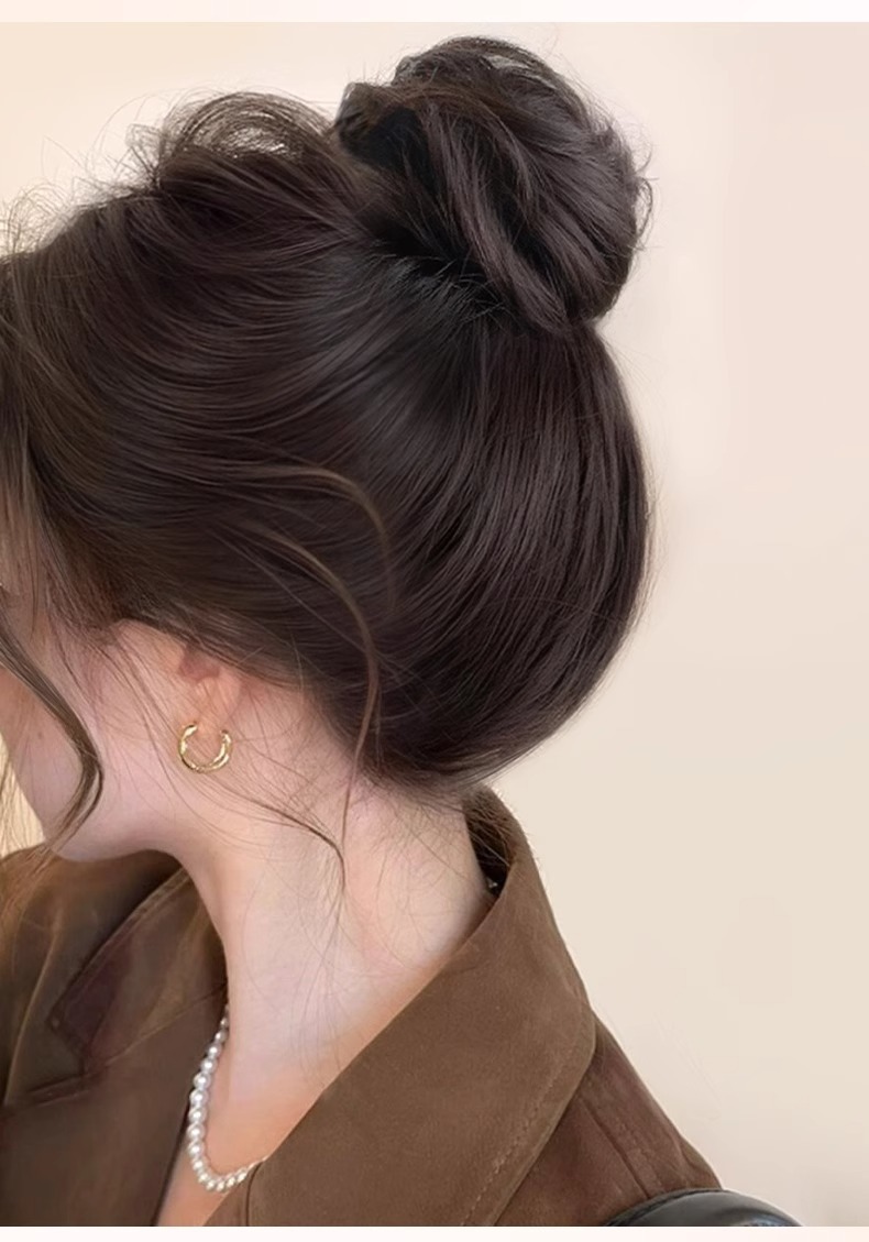 リアルなかつらの髪の輪のゴムの髪の包みは花の団子の頭を引っ張ります。