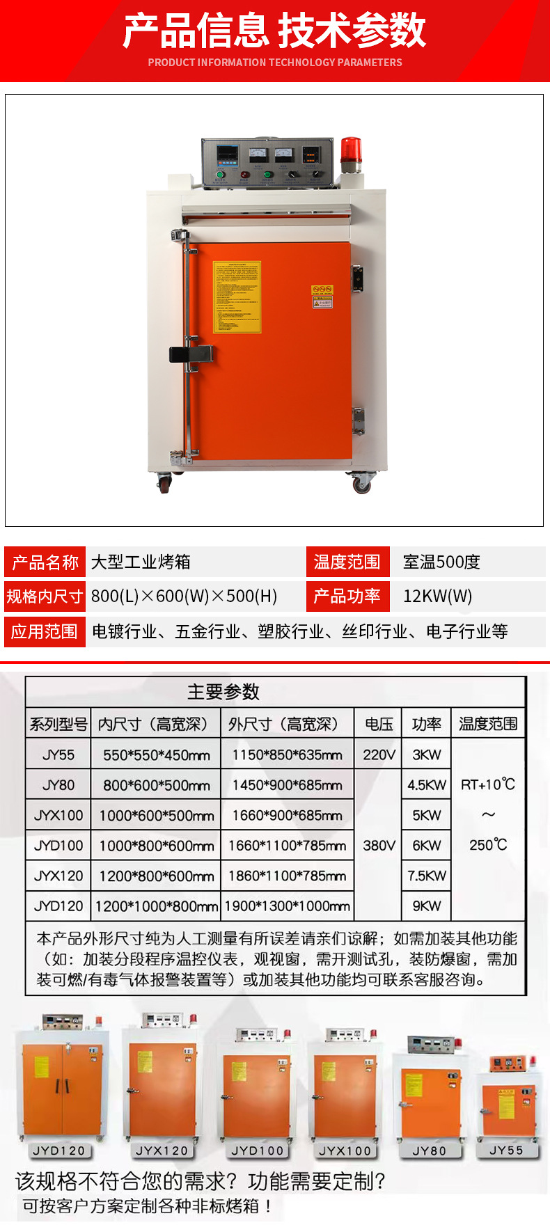 運風工業オーブン過温度警報大型工業オーブン熱風循環高温カートオーブン乾燥箱