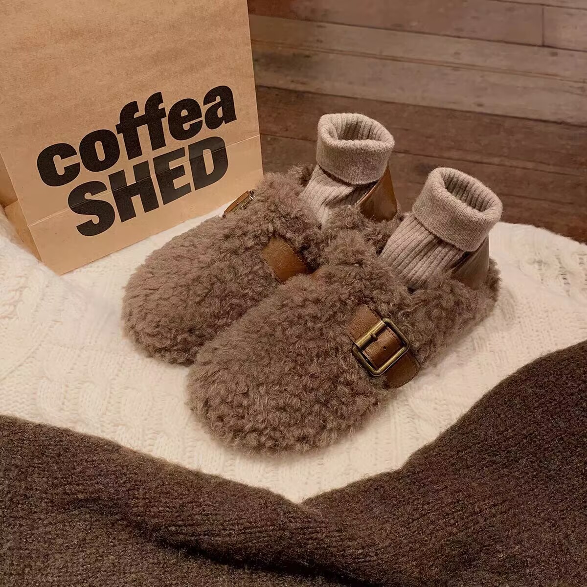一脚蹬懒人毛毛鞋女秋冬外穿2025年网红加绒平底羊羔毛豆豆棉鞋女
