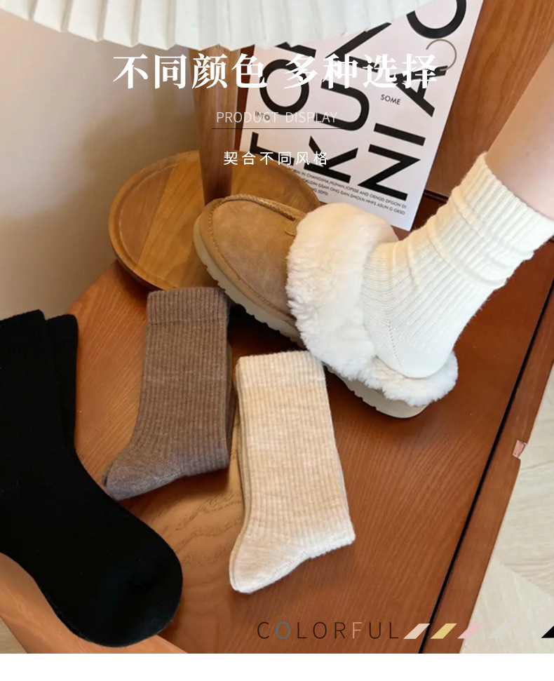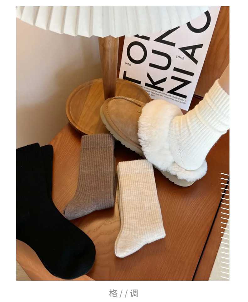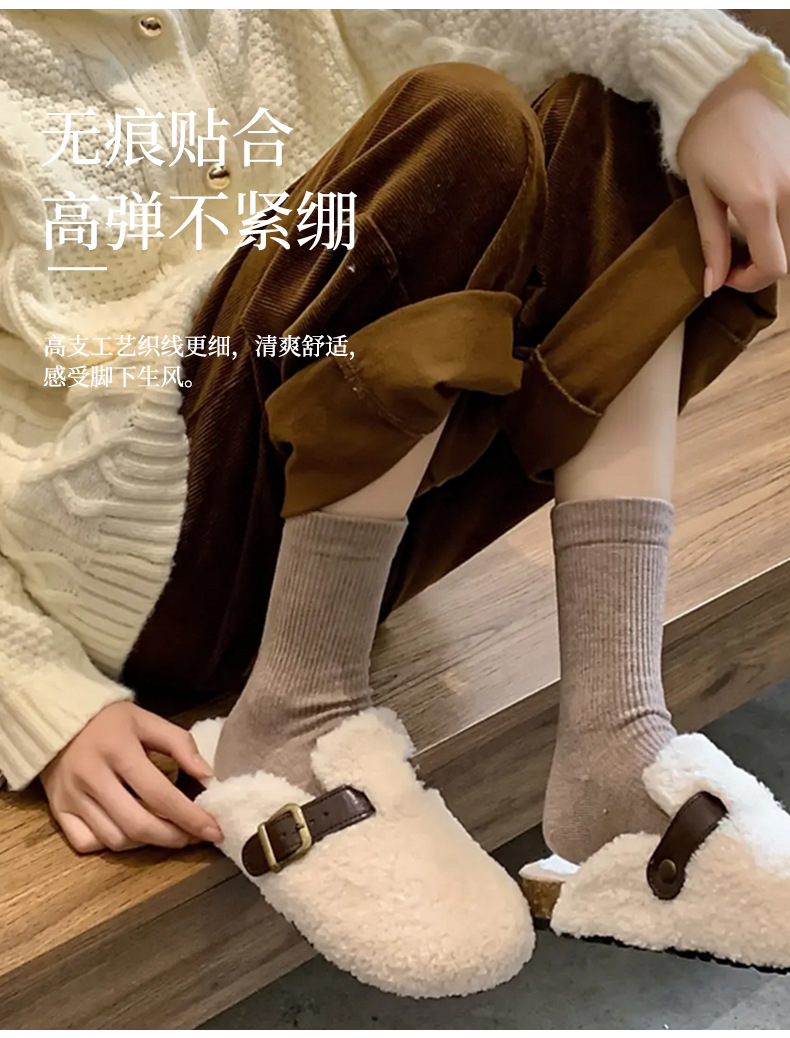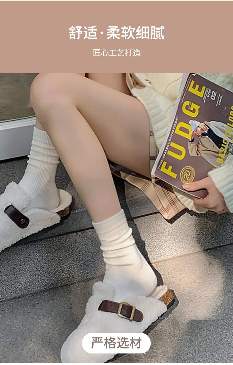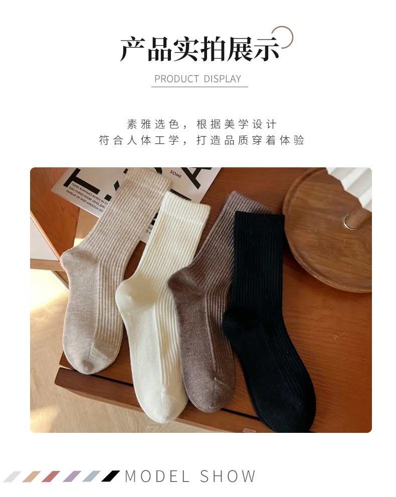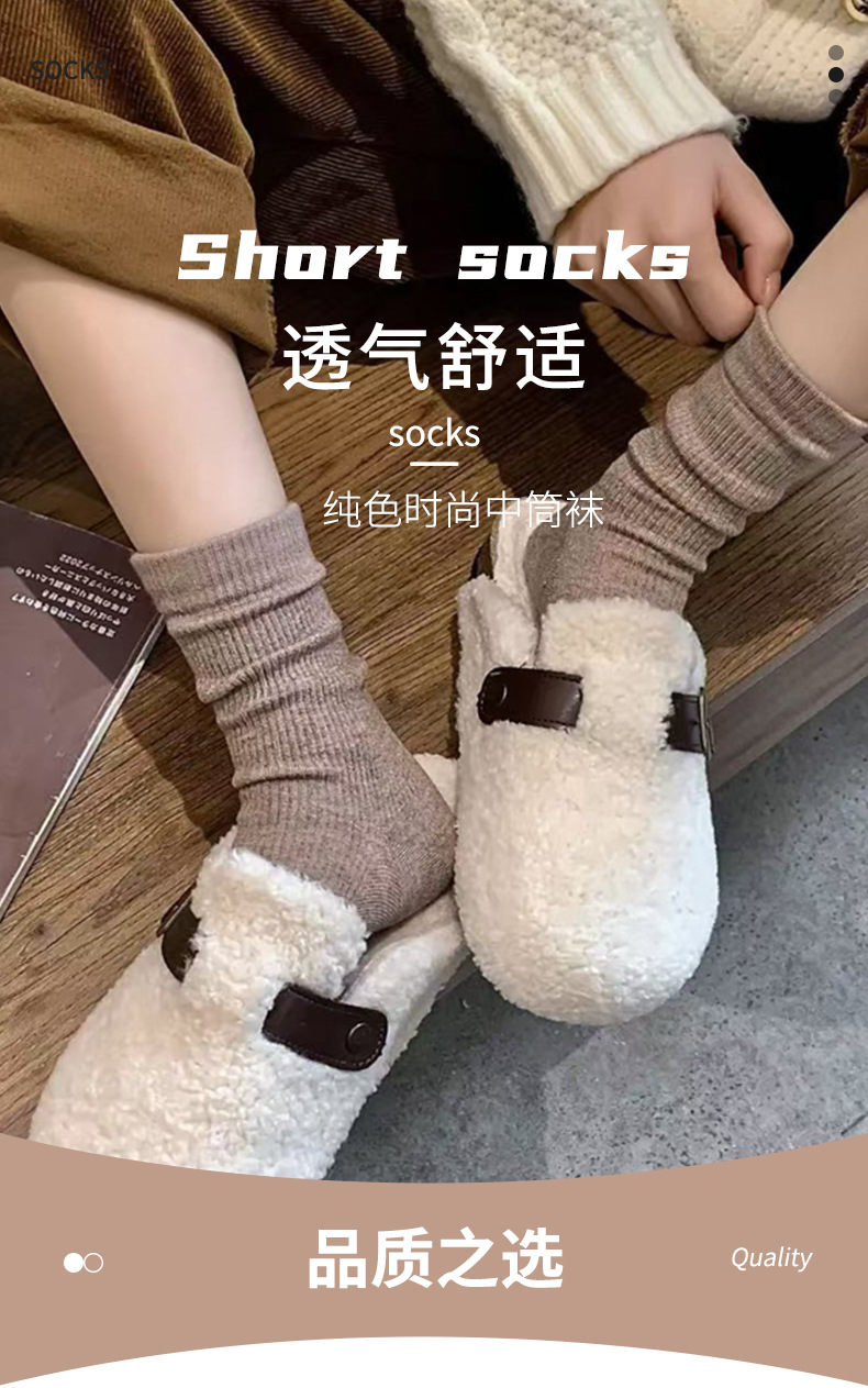 靴下の女性の中筒の靴下の秋冬の韓国版の百合の積み重ねの靴下の純色のinsの潮流の日系の復古の女性の中筒の靴下
