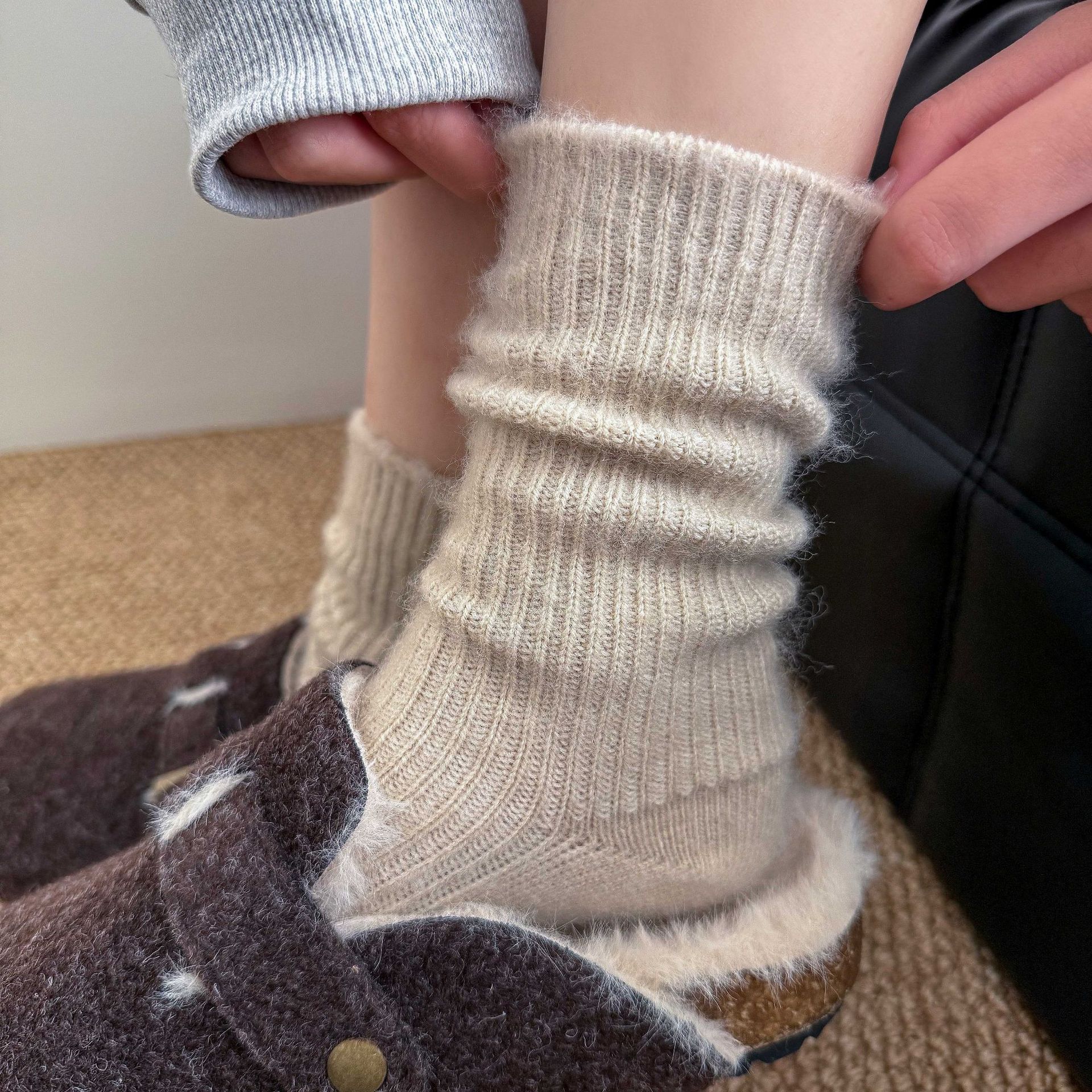 羊绒袜子女秋冬季加厚月子袜毛巾袜中筒拉绒毛圈袜冬天加绒加厚女