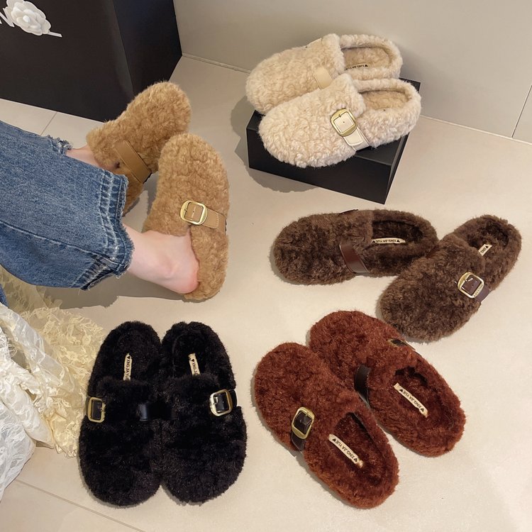 厚底勃肯鞋包头毛毛拖鞋女外穿2025新款秋冬懒人一脚蹬加绒棉拖鞋