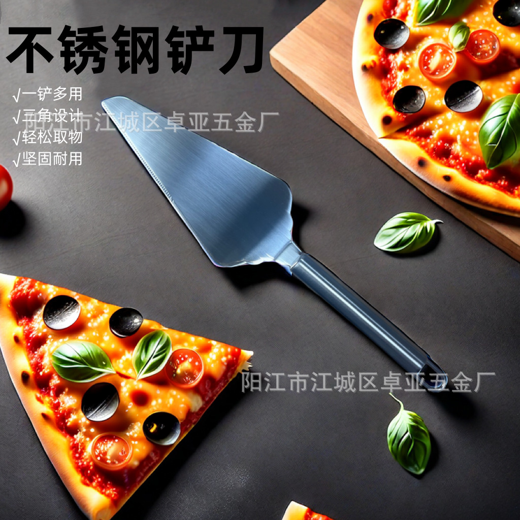 ステンレス鋼ピザスパチュラパンケーキチーズスパチュラハムスライス歯三角スパチュラケーキナイフ切断ベーキングスパチュラ