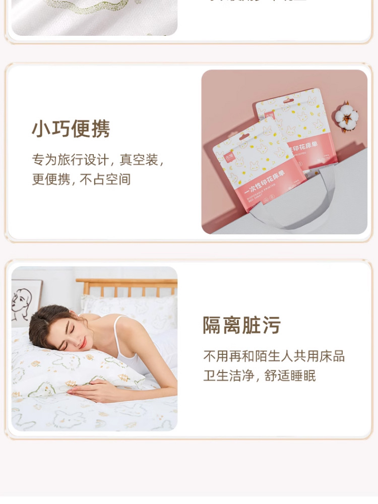 古旭一次性床单单件枕套床笠旅行酒店双人床火车卧铺单人床上用品