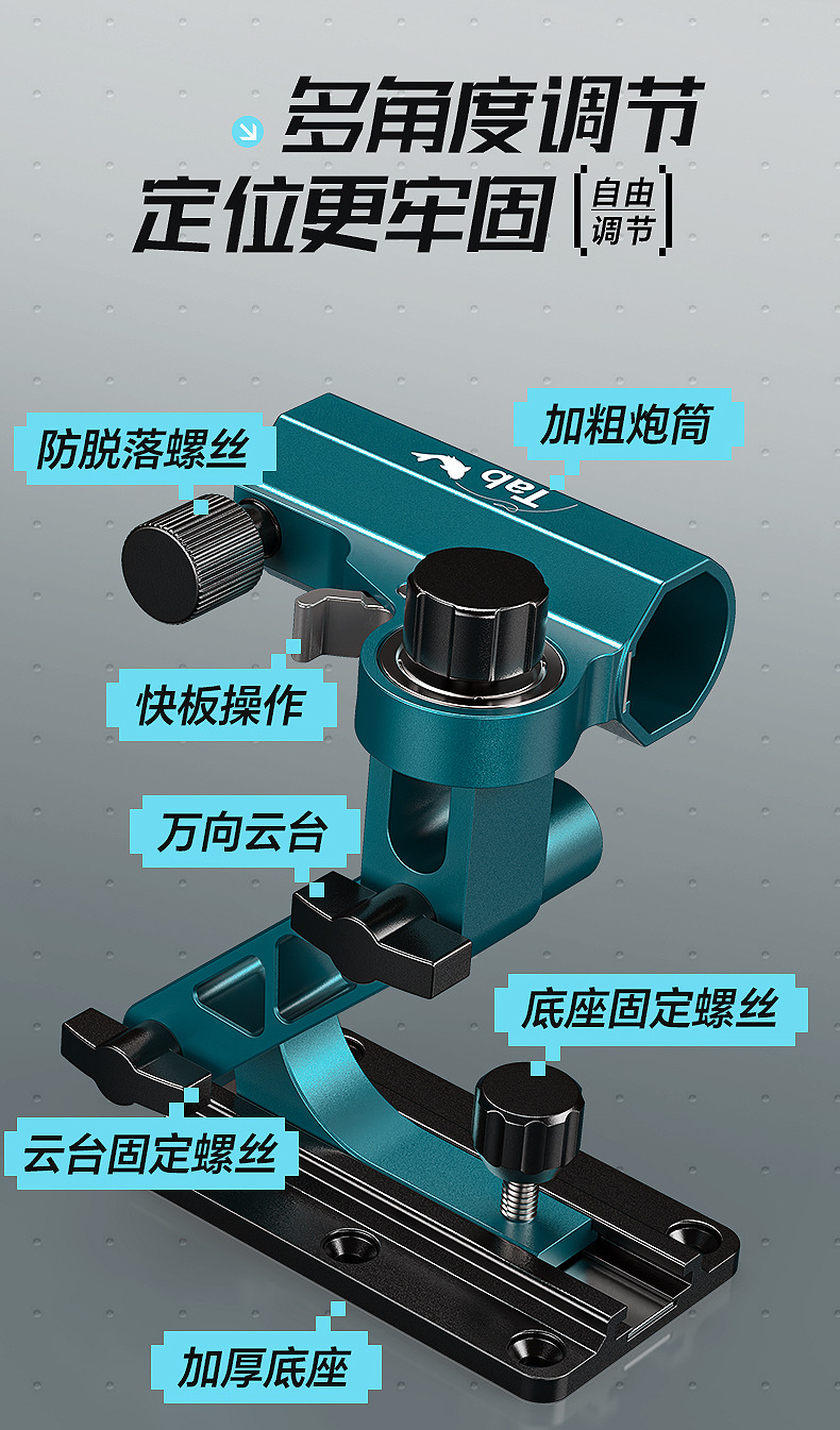 Tab拐角炮台支架钓箱配件多功能 精工插片加厚万向拐角大物炮台架