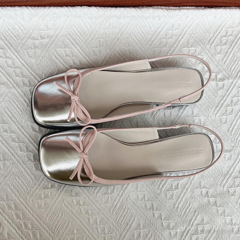 スクエアトゥ、チャンキーヒール、浅口、バックレス、つま先が覆われているメリージェーンサンダル、女性用、蝶結び、シングルシューズ、甘くて若々しい、2025年新作