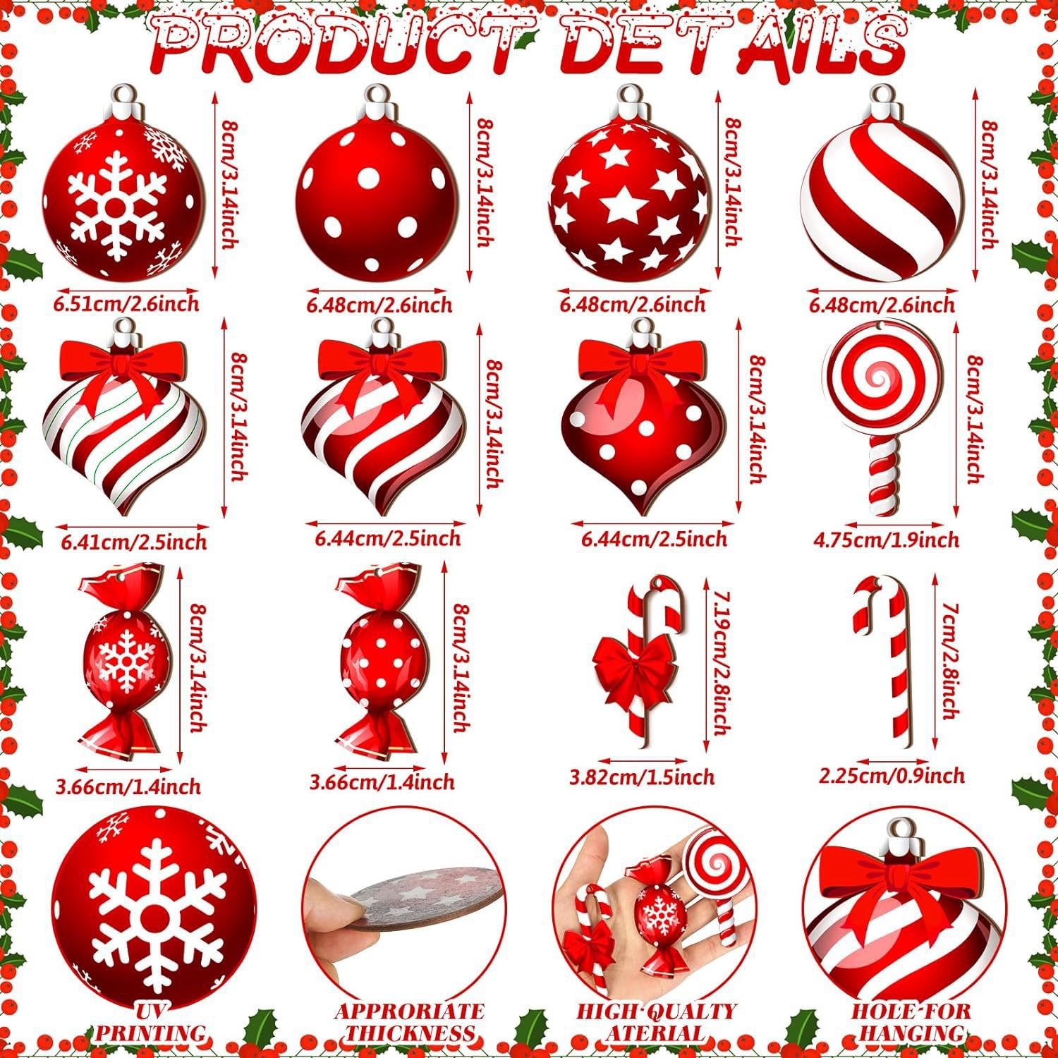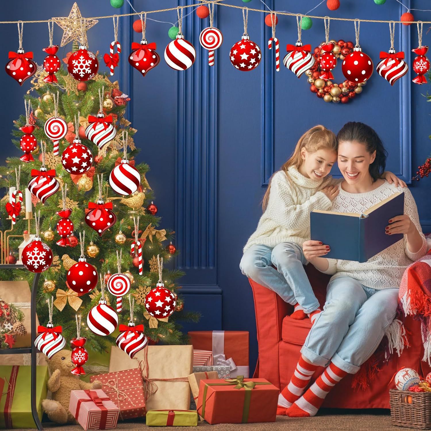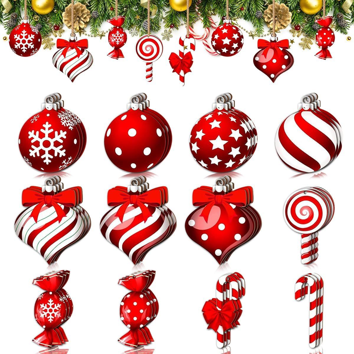 拐杖糖圣诞树饰品套装 - 彩色木制圣诞装饰品,适合树木,新年派对