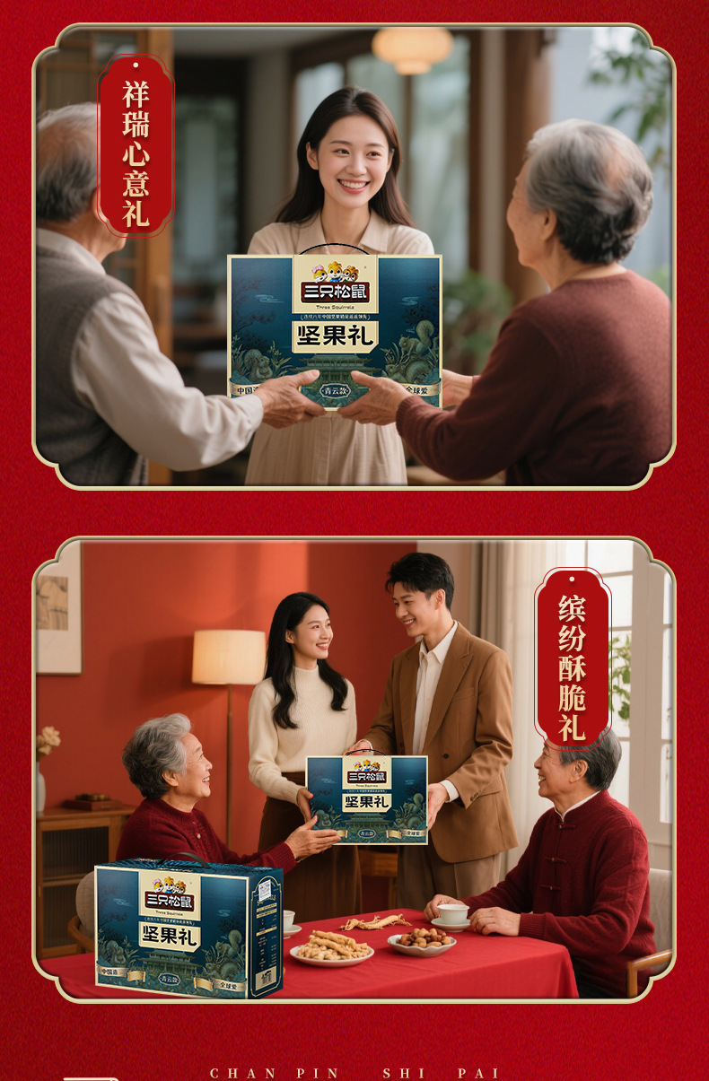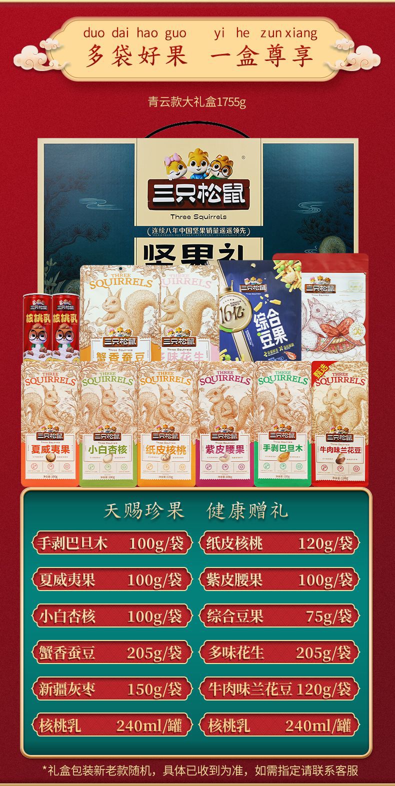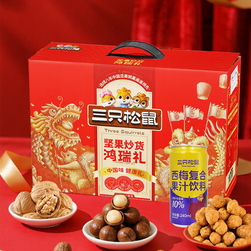 三只松鼠鸿瑞款坚果礼盒1020g/8袋大礼包长辈送礼物干货年货整箱