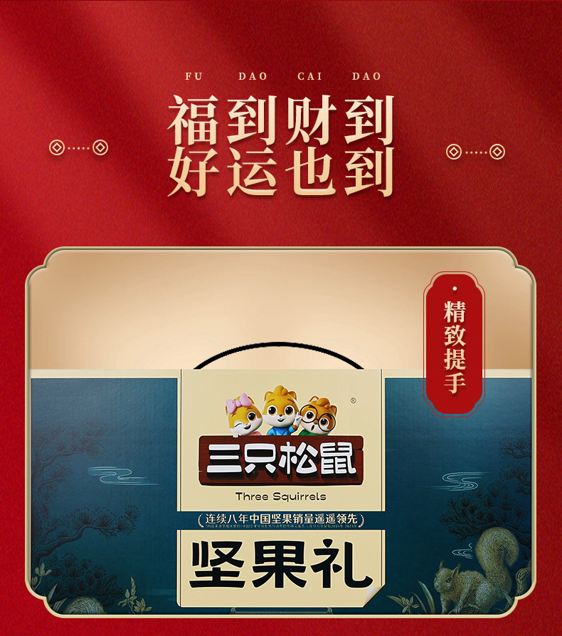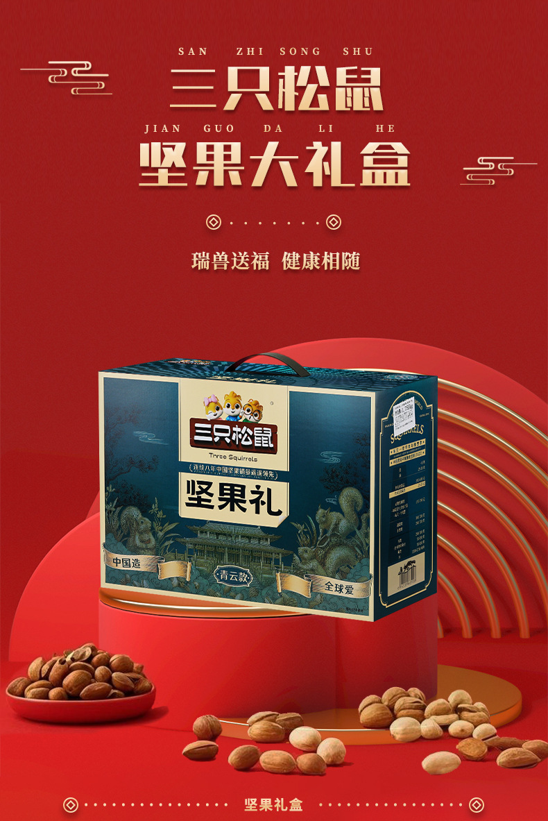 三只松鼠瑞红款坚果礼盒1501g/12袋健康果每日坚果干果大礼包包邮