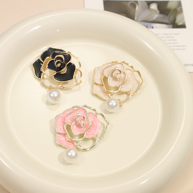 高級感ツバキの花の真珠のブローチの女性の百合の復古の胸の花のファッションの小さい香ばしい風の高級な胸の花の服は飾ります。