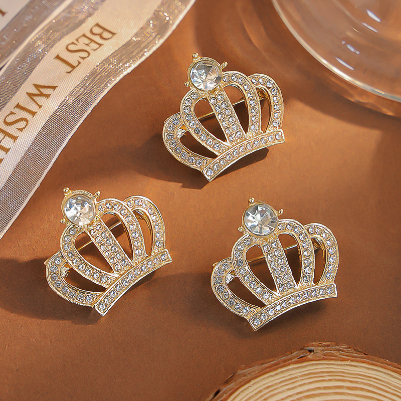 高級感小衆皇冠ブローチ女小香風合金胸花百合真珠水ドリル高級義烏アクセサリー