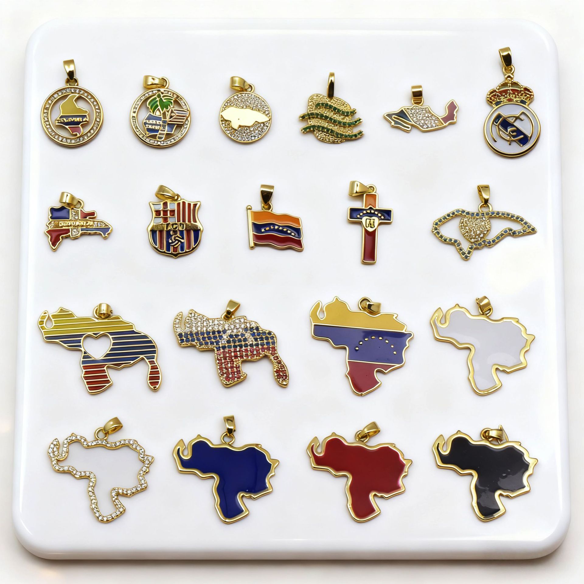 跨境热销铜镀18k金俄罗斯中东地图项链吊坠流行个性滴油配饰品