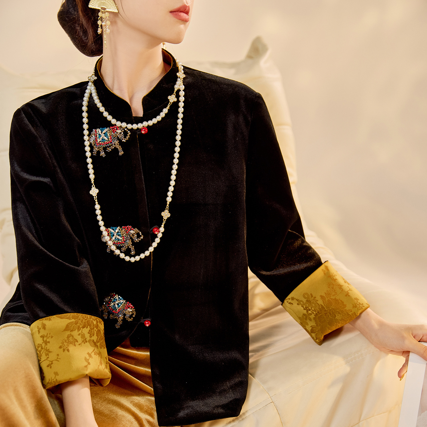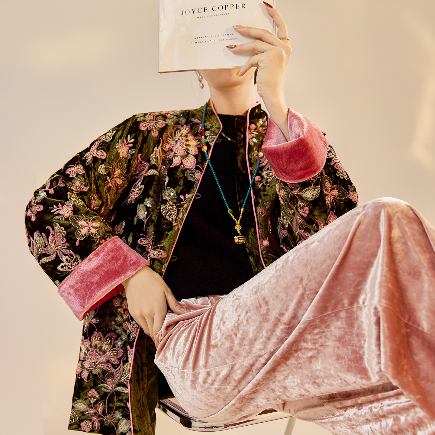 新中式复古气质立领棉服秋冬重工亮片刺绣加棉设计感外套女 NX036