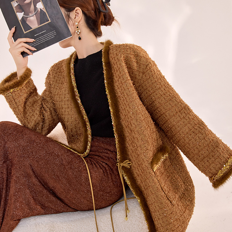 秋冬の中国風デザイン、上品で軽やかな高級感のあるトップス、高級感のあるファーの切り替えが効いた着痩せ効果のあるレディースコート ZXモデル MX060