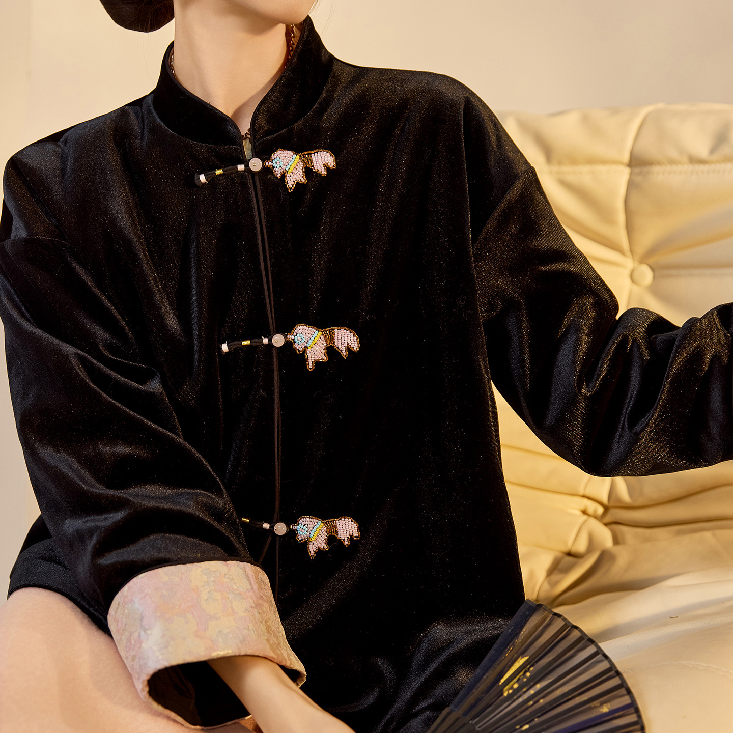 冬季新款高级感钉珠小马盘扣显瘦棉服新中式国风丝绒外套女 NX021
