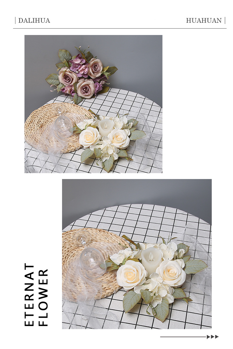 ヨーロッパ式シミュレーションアジサイ燭台花輪クロスボーダー高級感雰囲気デスクトップ置物ろうそく花輪パーティー装飾花