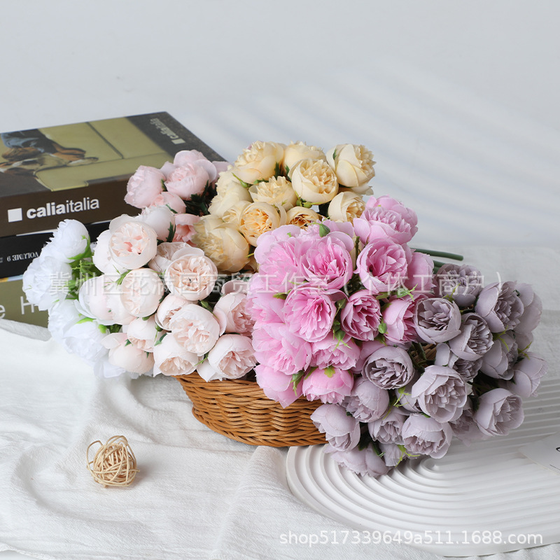 27头仿真家居婚庆用花茶玫假花花束高级感逼真场景布置手捧花玫瑰