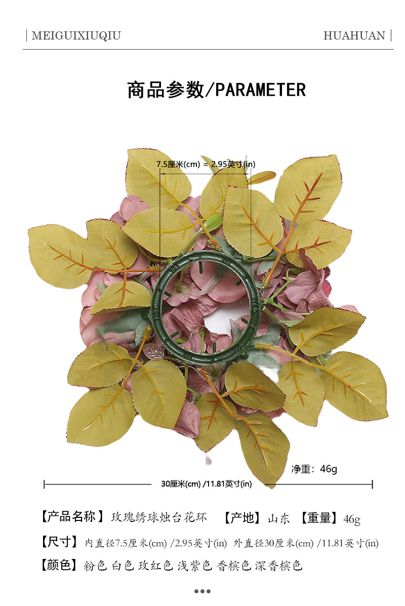 クロスボーダー造花ローズキャンドルホルダー花輪 ハロウィン クリスマス テーブルデコレーションキャンドルリング 造花キャンドルホルダー花輪
