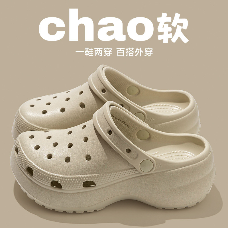云朵洞洞鞋女士夏季外穿EVA拖鞋 增高厚底防臭沙滩耐磨透气包头拖