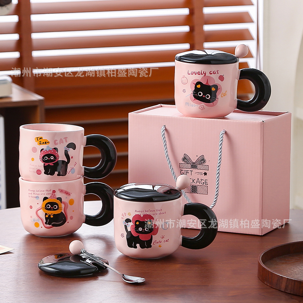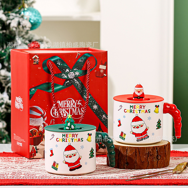 クリスマスプレゼントマグカップ女子かわいい陶磁器カップルカップ家庭用朝食コーヒーカップ蓋付きスプーン