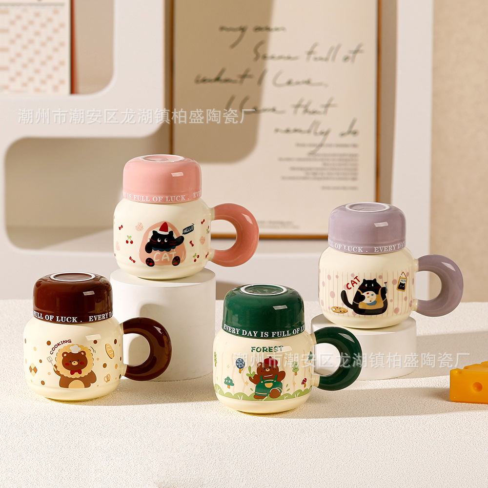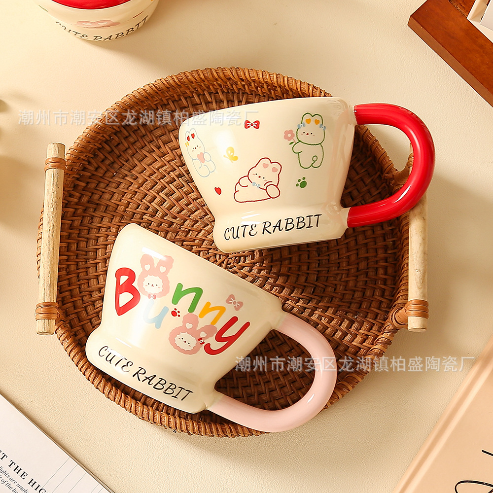 ミルクfufuセラミックカップ高级感クリエイティブ漫画マグカップ女の子饮み水カップオフィス用コーヒーカップ