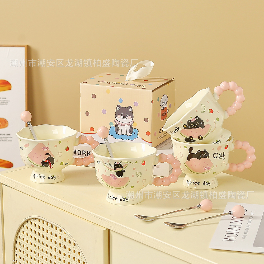 可爱卡通ins小狗马克杯高颜值情侣陶瓷水杯送女生生日礼物伴手礼
