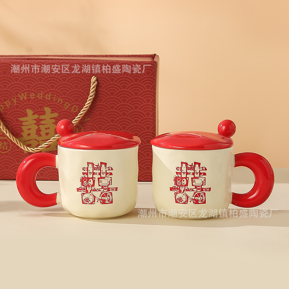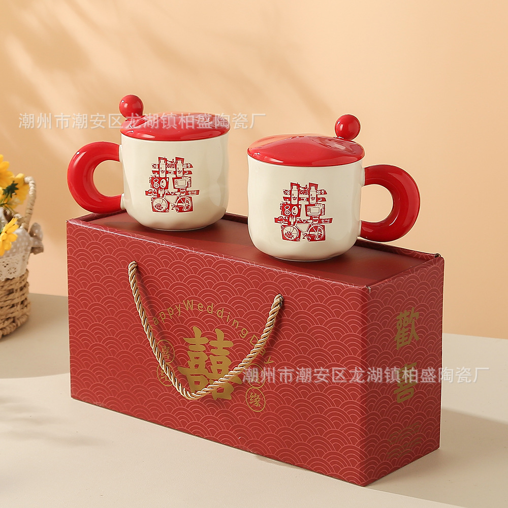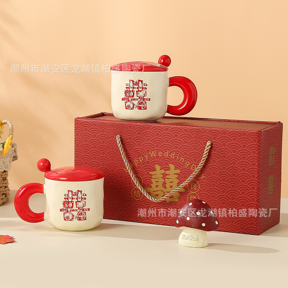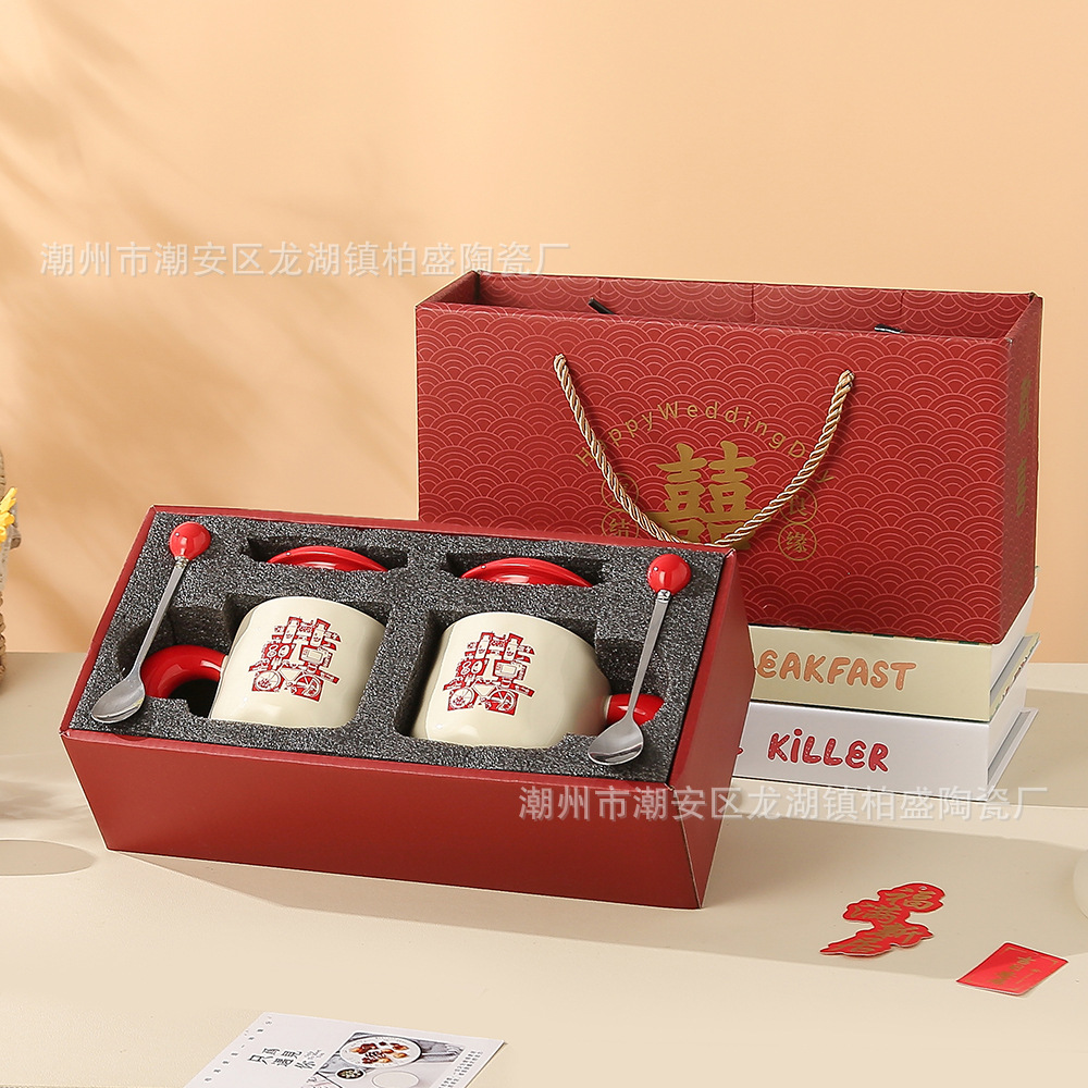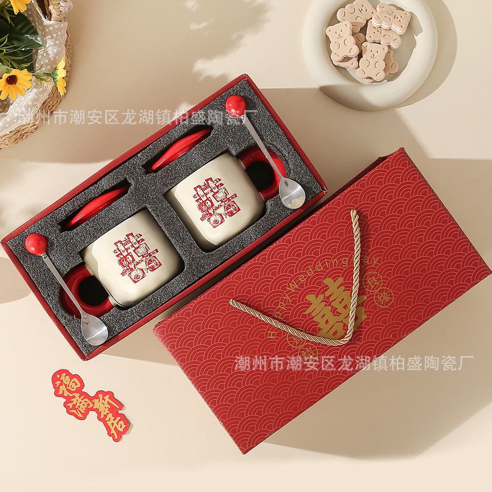国风新婚喜字结婚送新娘礼物陶瓷马克杯高颜值情侣男女礼盒对杯