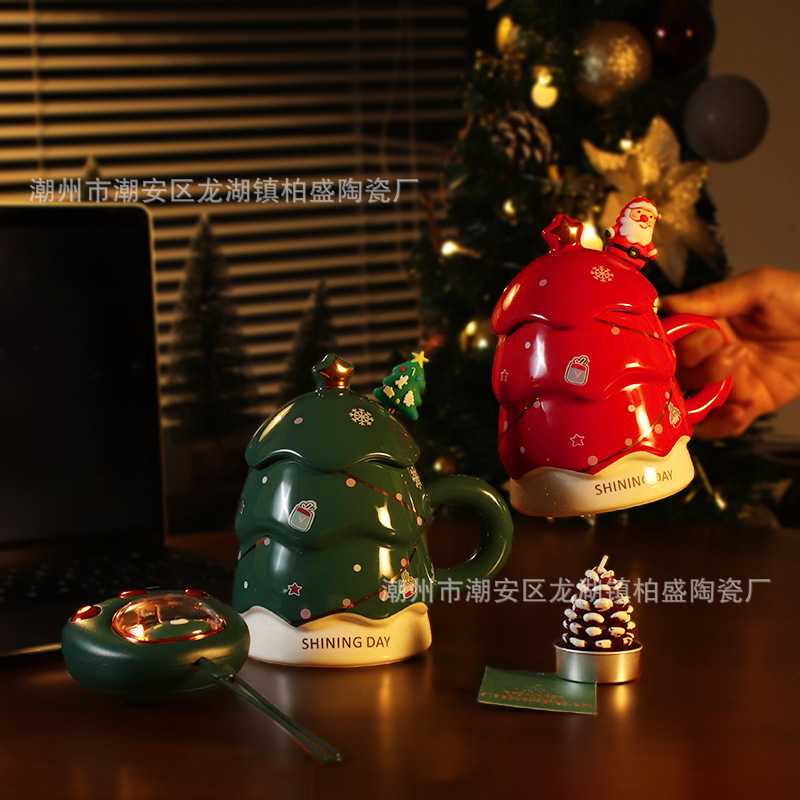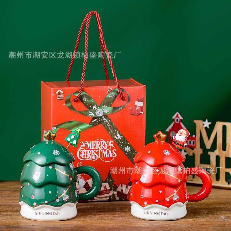 クリスマスツリー陶磁器コップ女子高颜値誕生日プレゼント蓋付きマグカップカップル家庭用大容量コップ