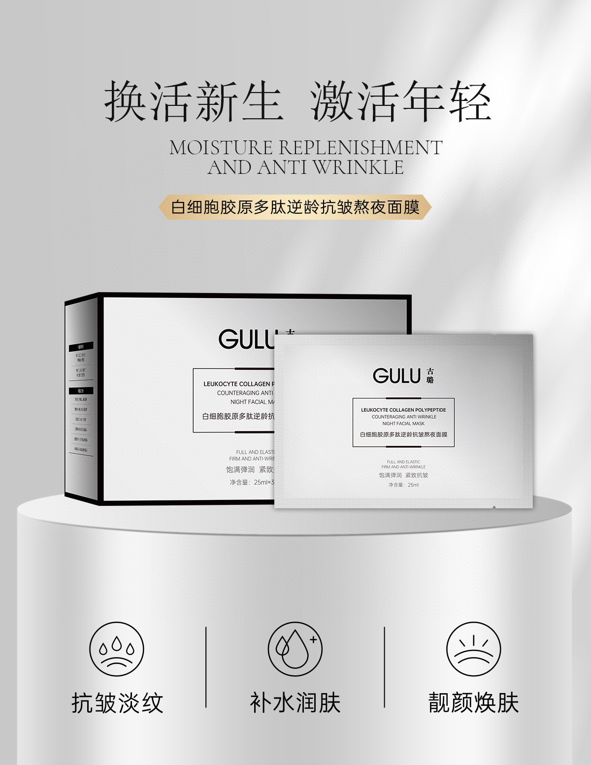 GULU古璐白血球コラーゲンのポリペプチド逆齢抗シワ夜更かしマスクの薄い紋が明るくて、保護がしっかりしていて、栄養が柔らかいです。