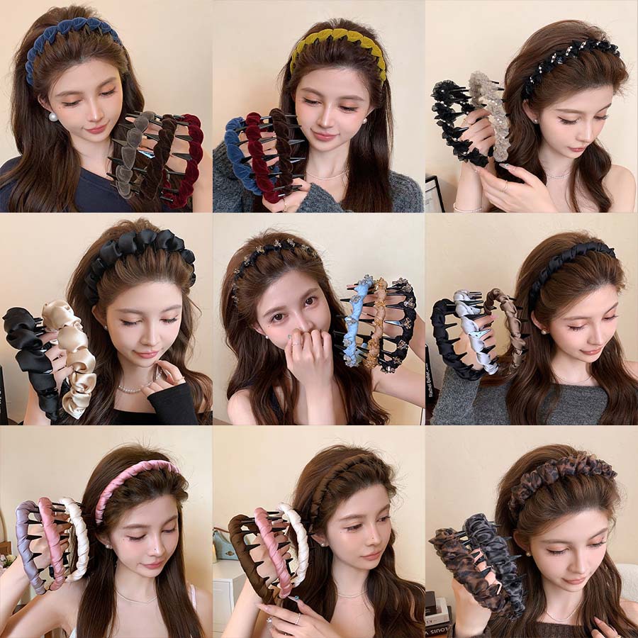 レトロなベルベットの歯付きヘアバンド、女性用秋冬ハイヘアバンド、高級感のある軽やかな高級感、滑り止め、洗顔専用ヘアバンド