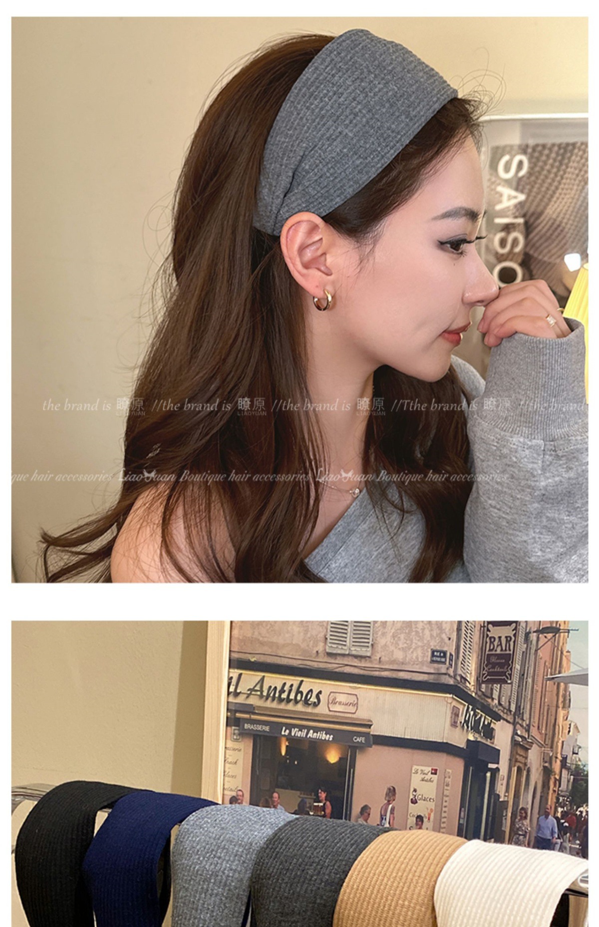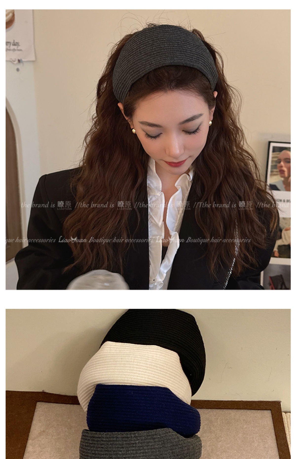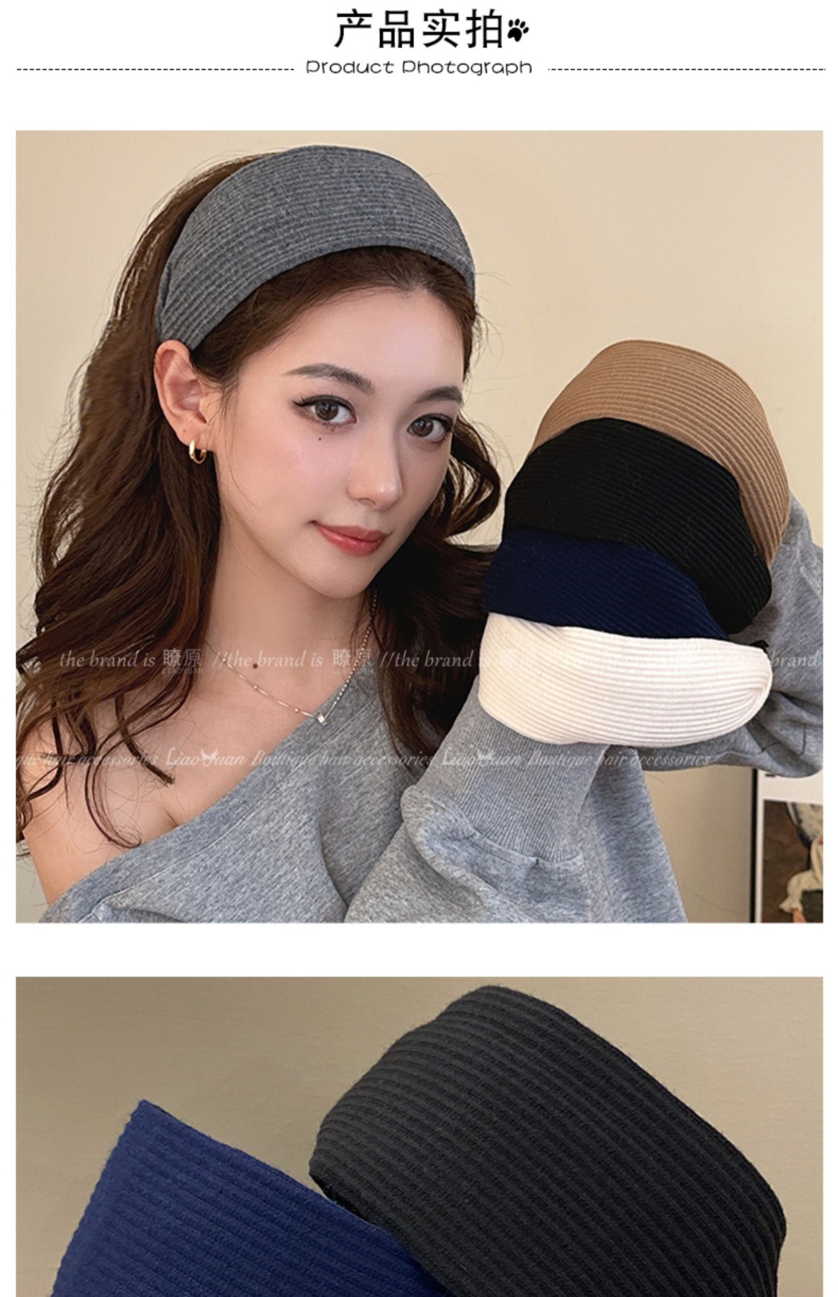 高级感洋气时尚灰色发箍女外出百搭气质发卡高颅顶压发头箍头饰