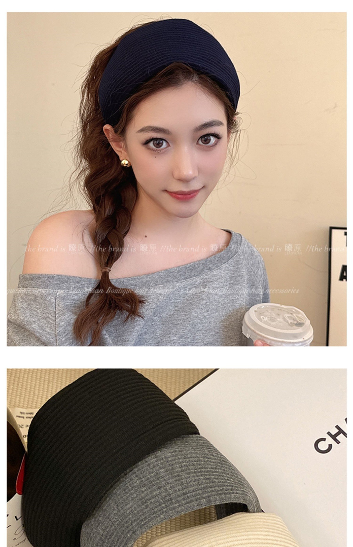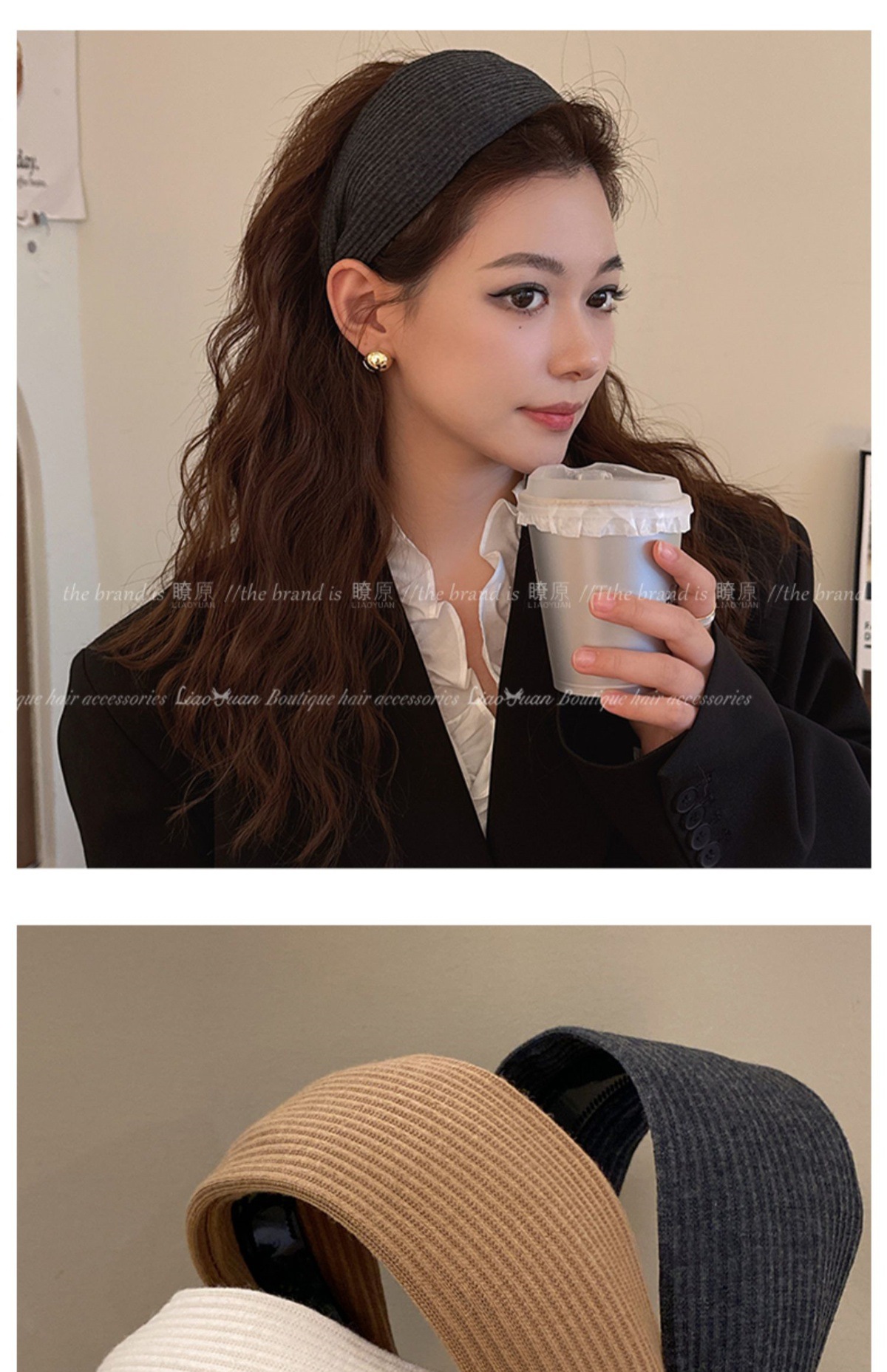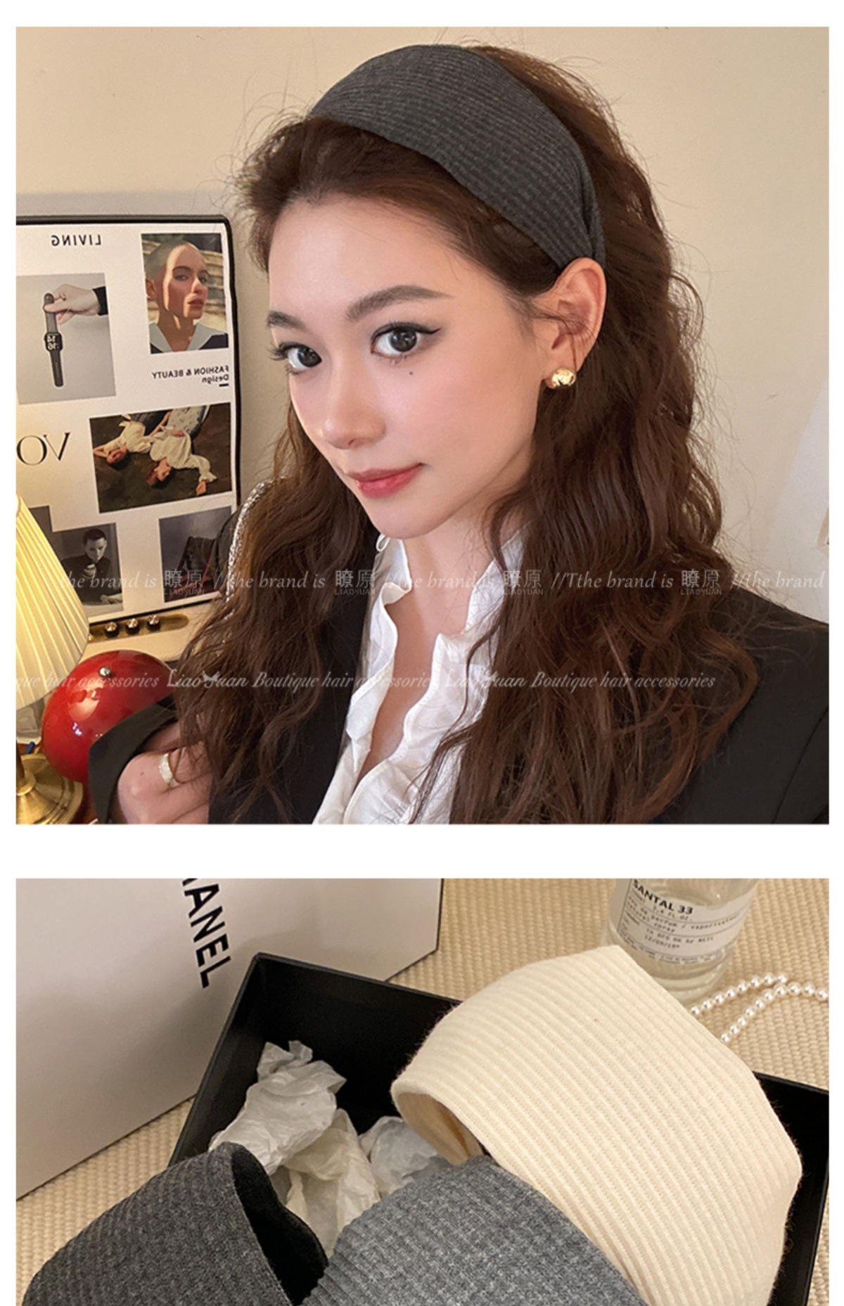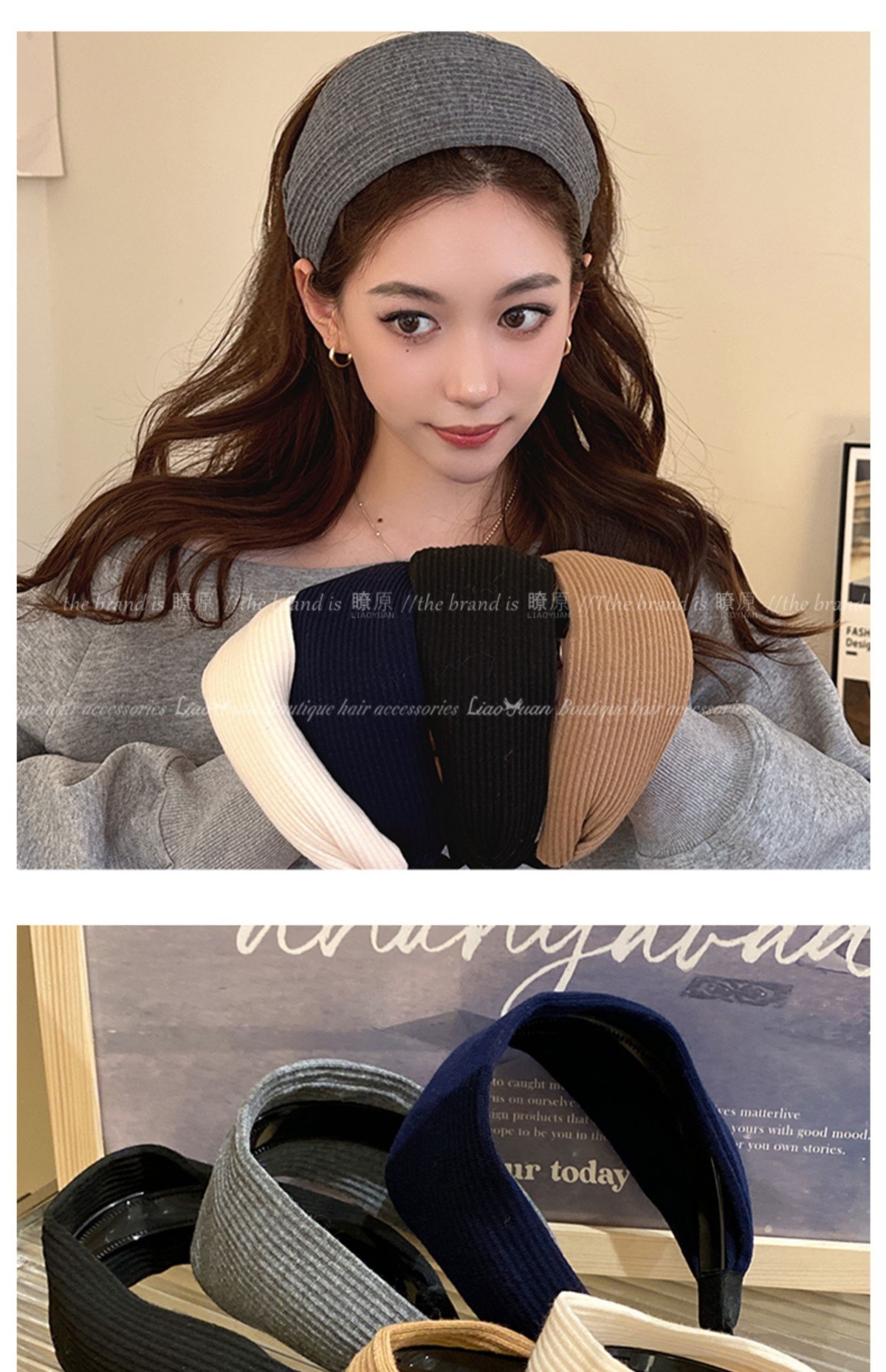 高级感洋气时尚灰色发箍女外出百搭气质发卡高颅顶压发头箍头饰