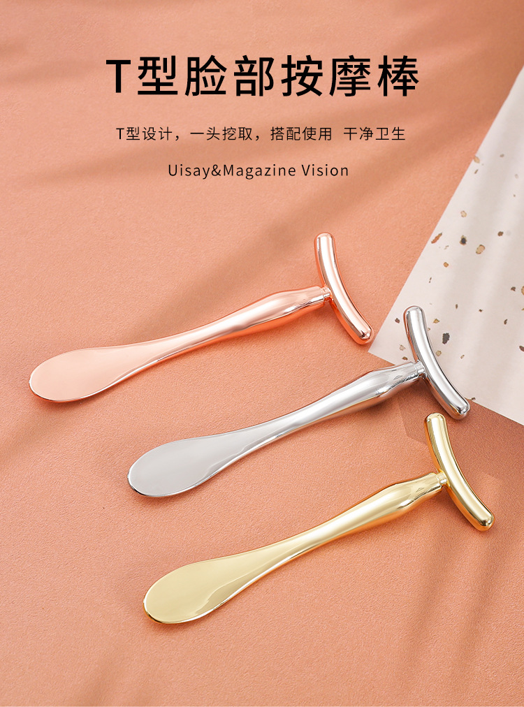 メーカー直販亜鉛合金大T字マッサージアイクリーム金属スプーンマッサージ器両用スプーンダブルヘッド